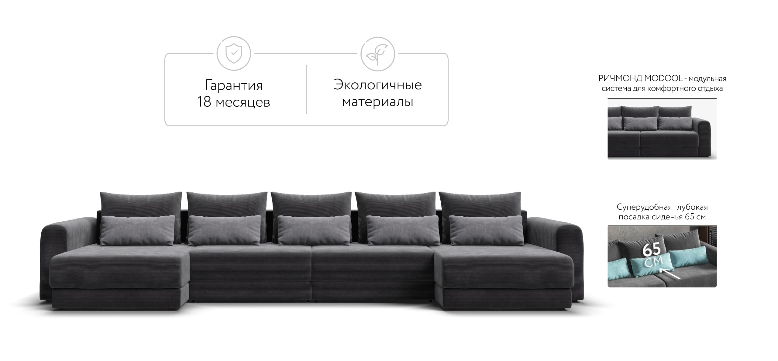 Ричмонд Модуль – Модульная система для комфортного отдыха. Суперудобная глубокая посадка и высокоэластичная пена с дополнительным слоем Периотек создадут максимальный комфорт во время отдыха.