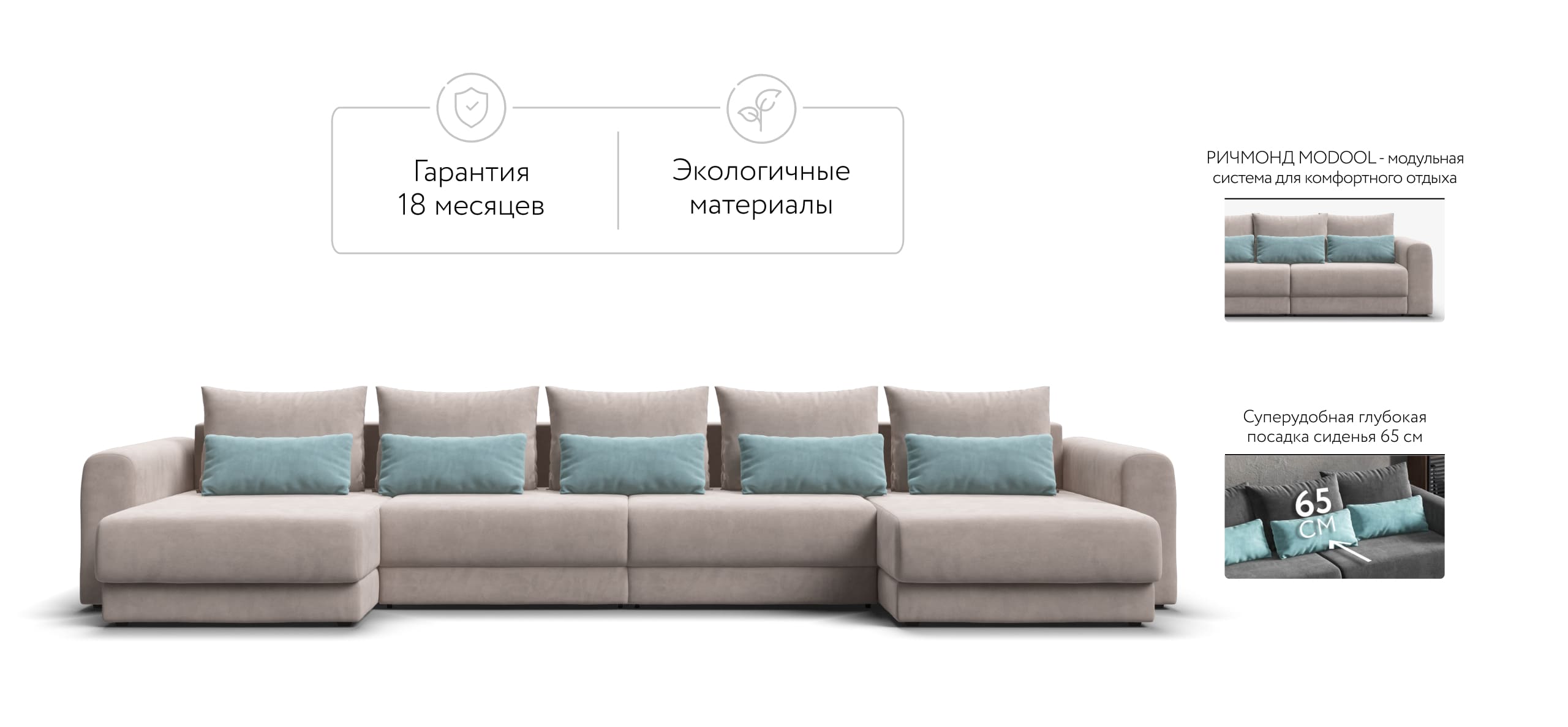 Ричмонд Модуль – Модульная система для комфортного отдыха. Суперудобная глубокая посадка и высокоэластичная пена с дополнительным слоем Периотек создадут максимальный комфорт во время отдыха.