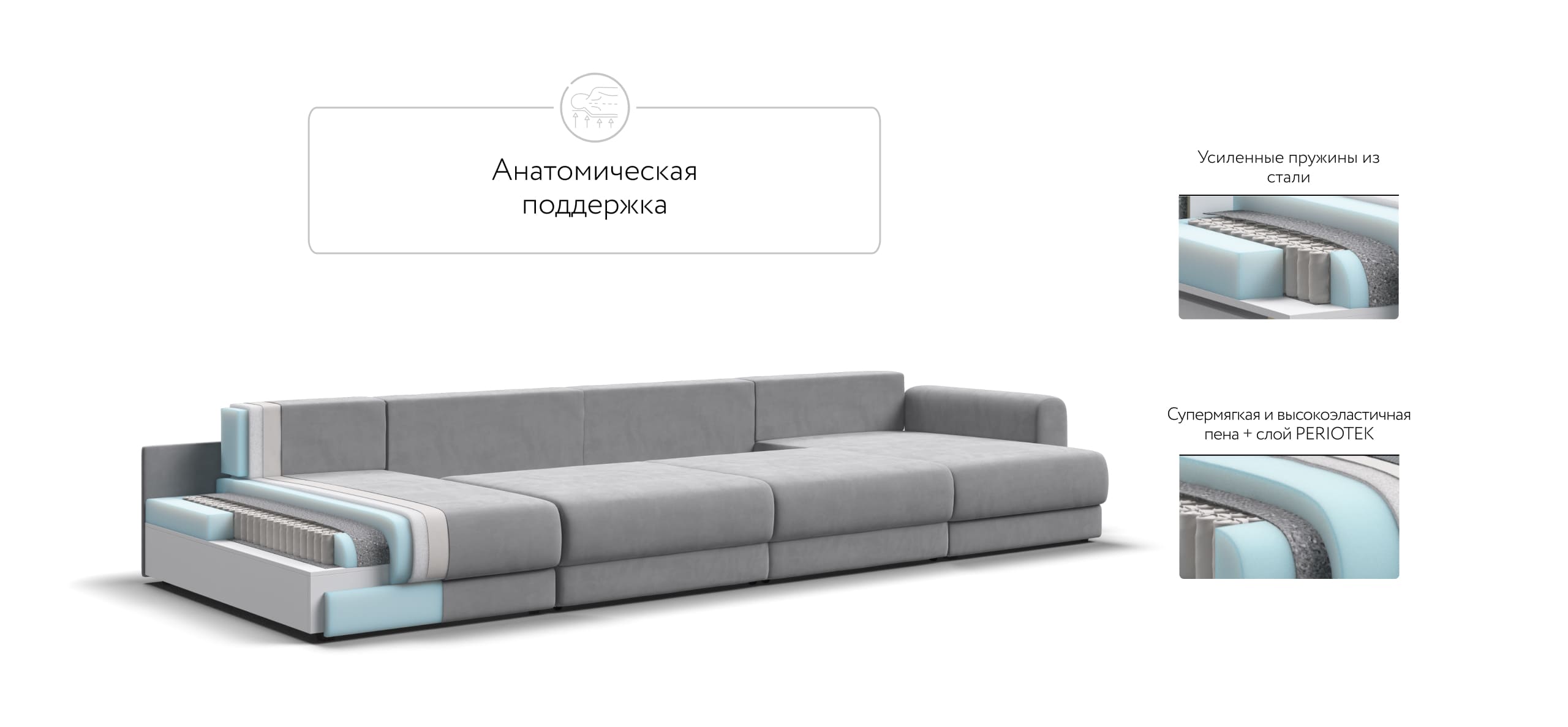 Ричмонд Модуль – Модульная система для комфортного отдыха. Суперудобная глубокая посадка и высокоэластичная пена с дополнительным слоем Периотек создадут максимальный комфорт во время отдыха.
