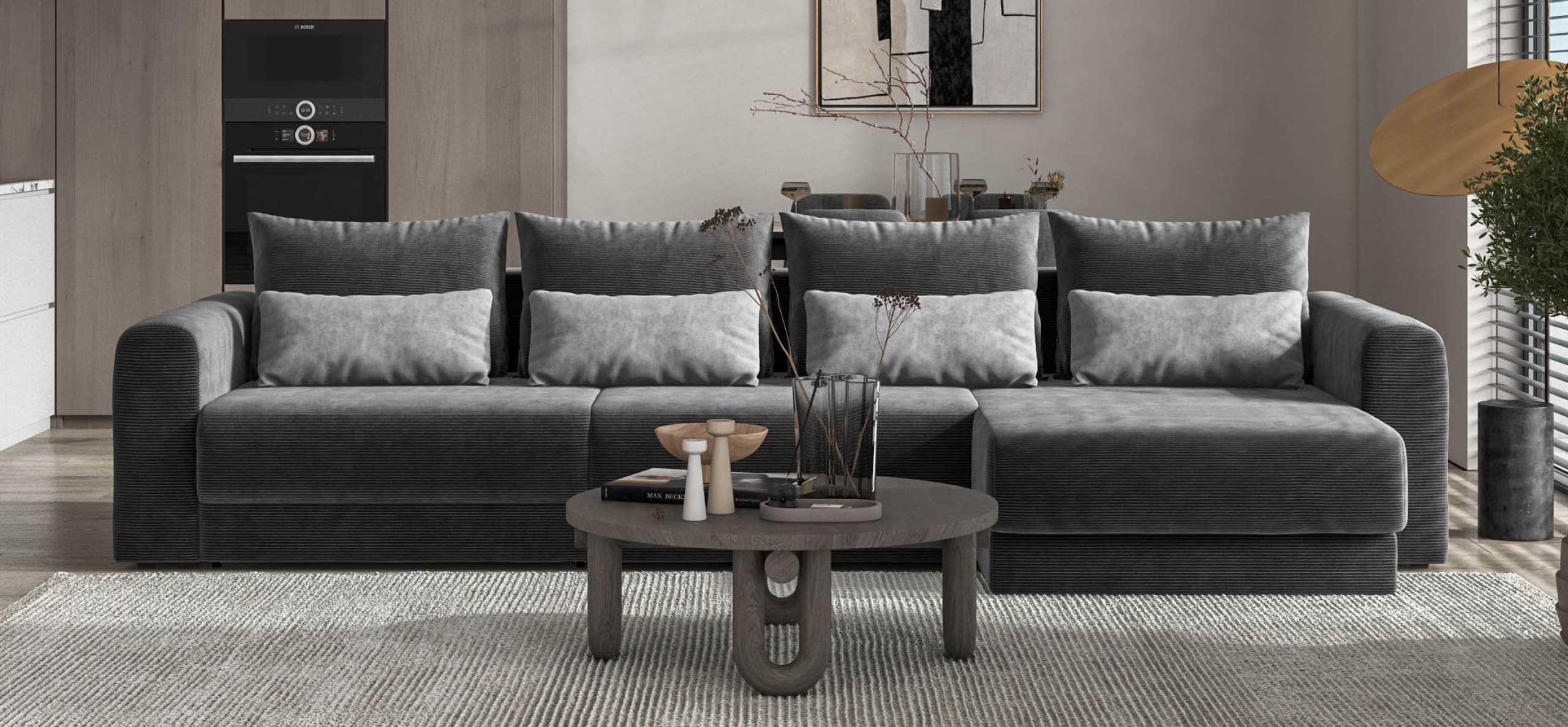 Простой и надежный механизм еврокнижка с легкостью превратит модульную систему в комфортное спальное место.