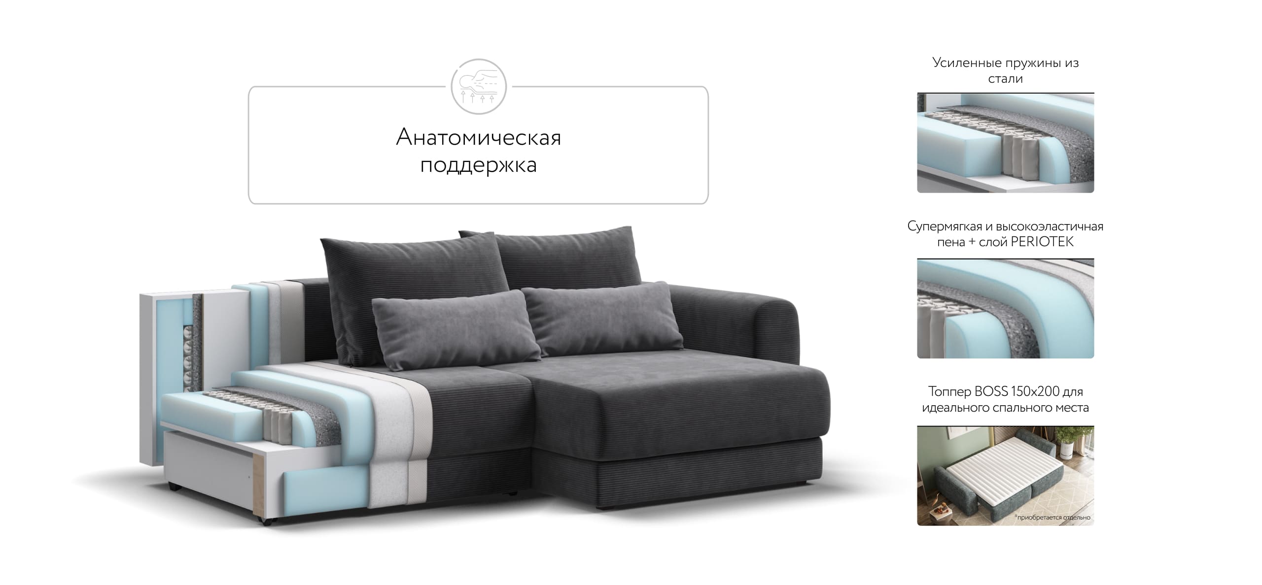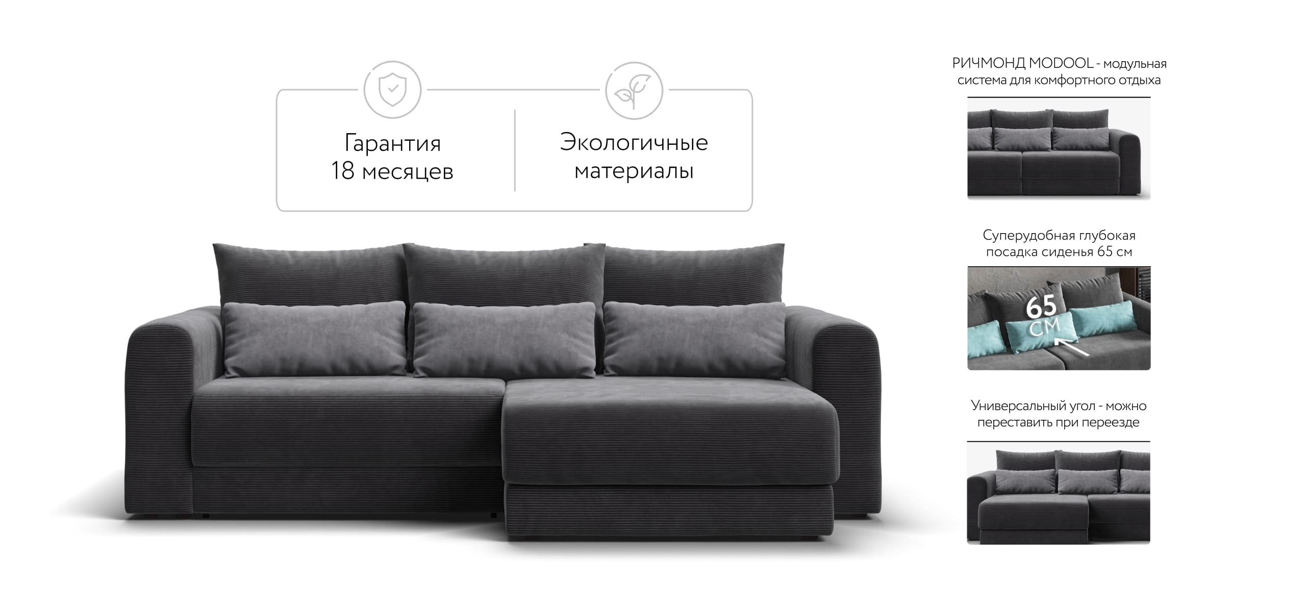 Ричмонд Модуль – Модульная система для комфортного отдыха. Суперудобная глубокая посадка и высокоэластичная пена с дополнительным слоем Периотек создадут максимальный комфорт во время отдыха.