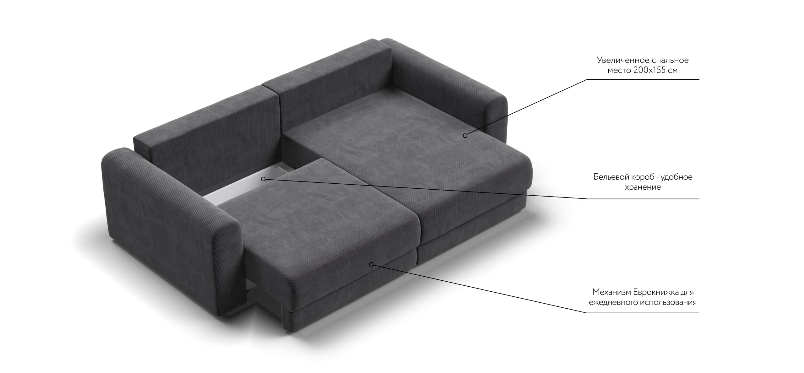 Простой и надежный механизм еврокнижка с легкостью превратит модульную систему в комфортное спальное место.