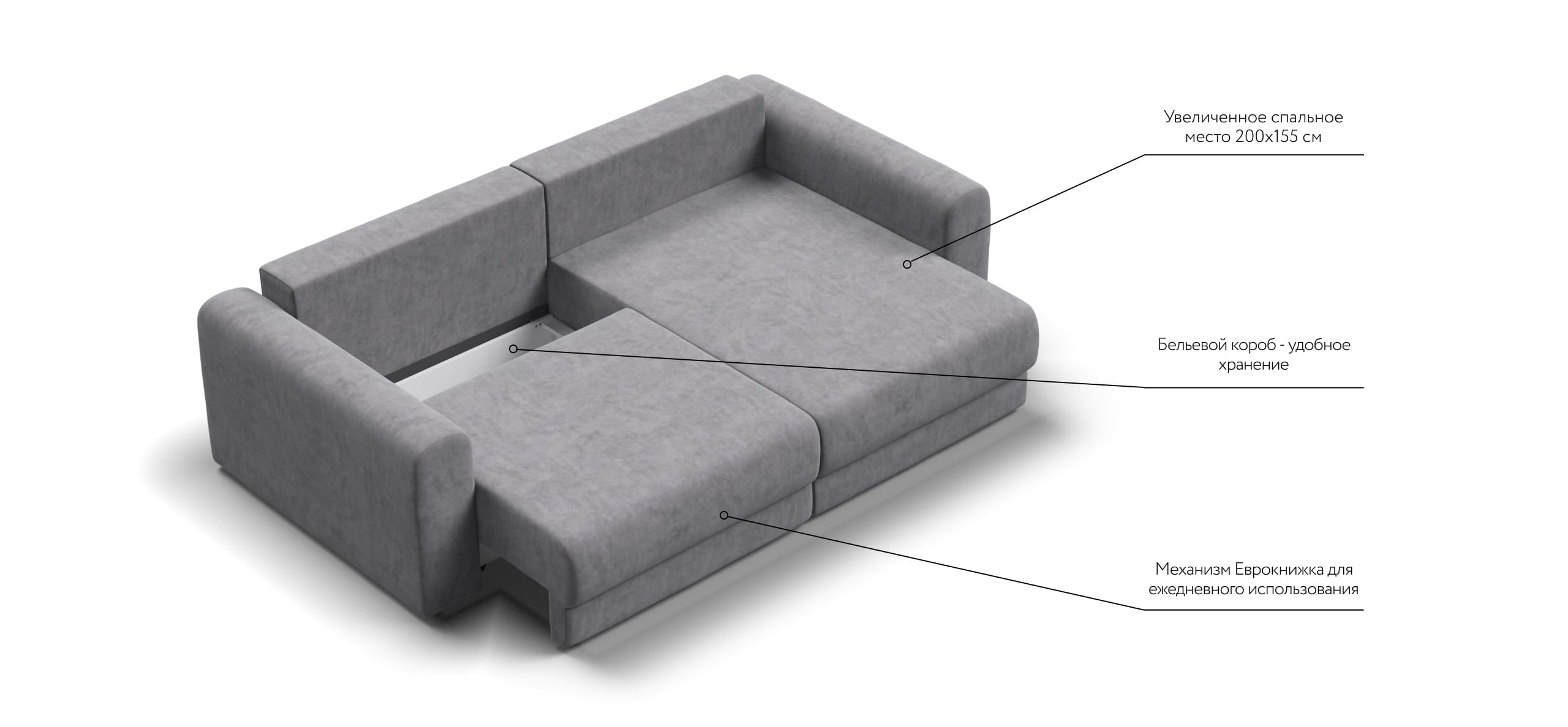 Простой и надежный механизм еврокнижка с легкостью превратит модульную систему в комфортное спальное место.