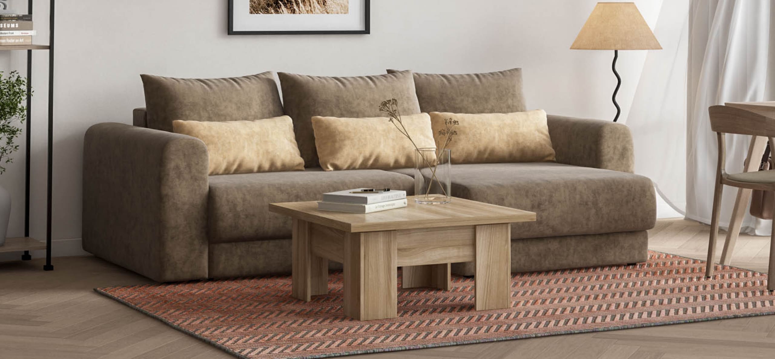 Простой и надежный механизм еврокнижка с легкостью превратит модульную систему в комфортное спальное место.