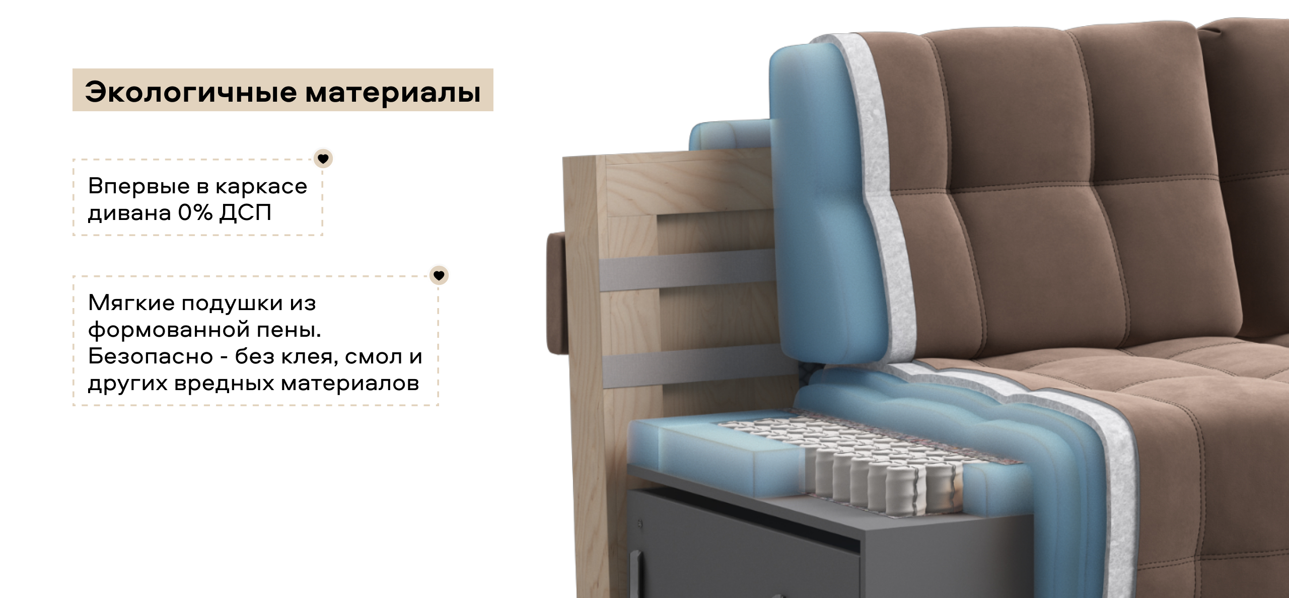 Покупая диван Босс ХО Макс вы становитесь обладателем уникальных подарков: быстрая зарядка для смартфона, 2 стильных кружки, 2 удобных столика для ноутбука, 2 подушки, комплект запасных накладок на Подлокотники Фул, экоручки и средство для чистки Босс Клин