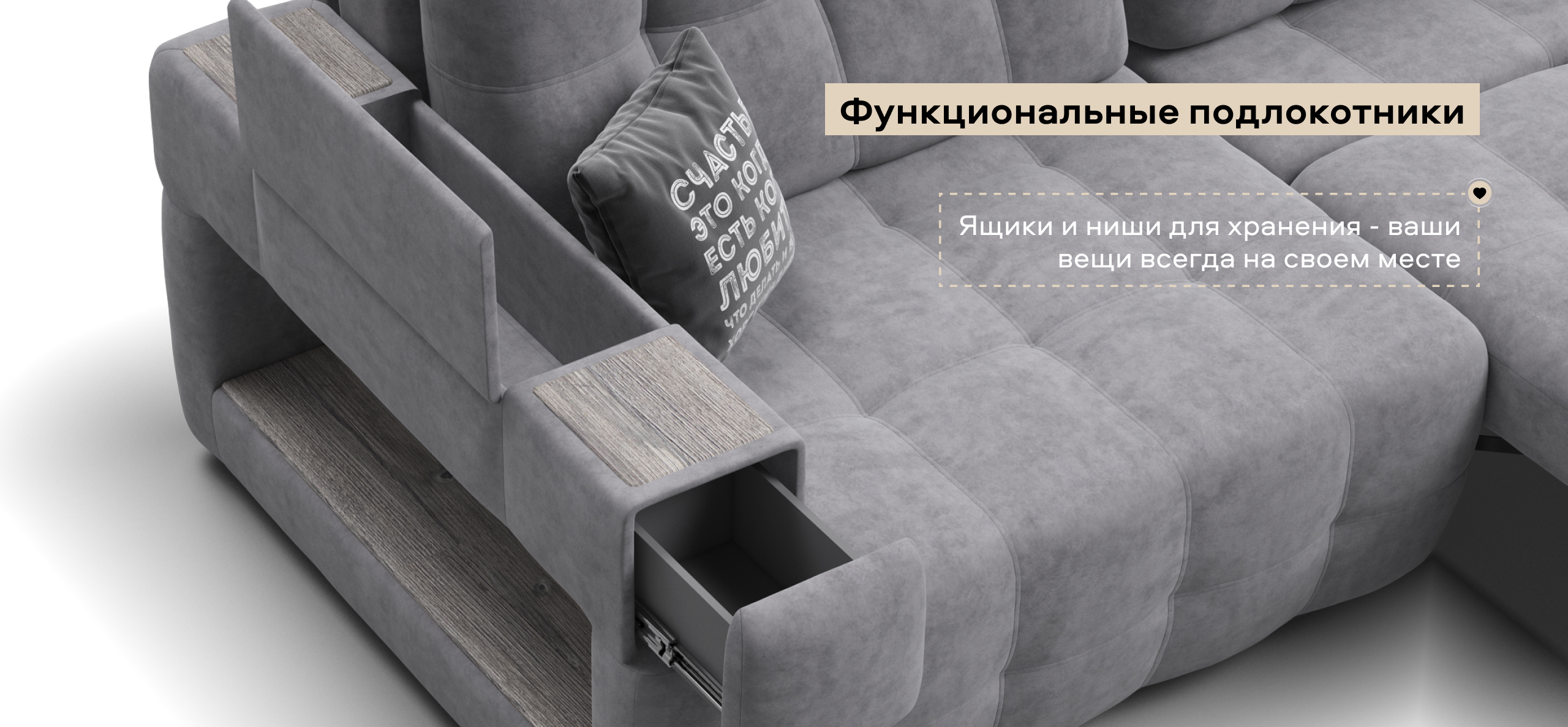 Покупая диван Босс ХО Макс вы становитесь обладателем уникальных подарков: быстрая зарядка для смартфона, 2 стильных кружки, 2 удобных столика для ноутбука, 2 подушки, комплект запасных накладок на Подлокотники Фул, экоручки и средство для чистки Босс Клин