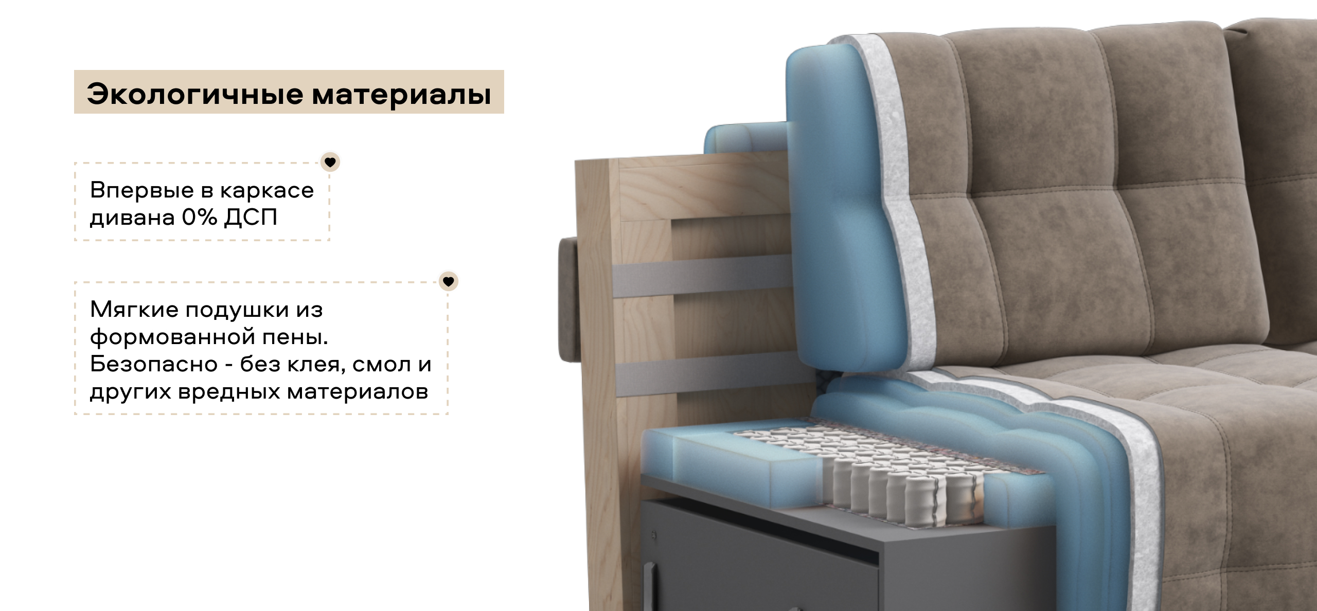 Покупая диван Босс ХО Макс вы становитесь обладателем уникальных подарков: быстрая зарядка для смартфона, 2 стильных кружки, 2 удобных столика для ноутбука, 2 подушки, комплект запасных накладок на Подлокотники Фул, экоручки и средство для чистки Босс Клин