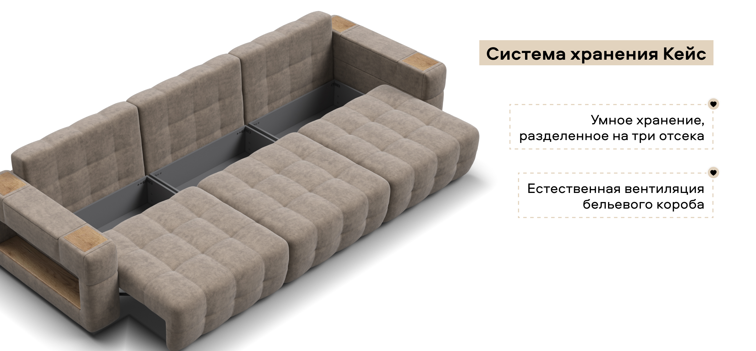 Босс ХО Макс - это и прямой, угловой и П-образный диван сразу, за 10 секунд вы можете превратить его в правый или левый угол, а также в П-образный.
