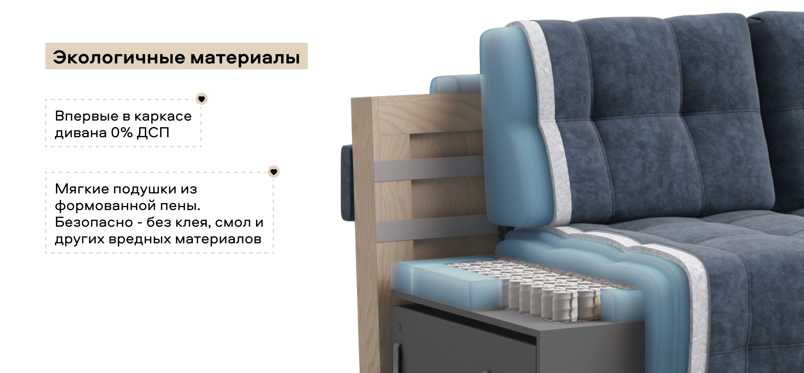 Покупая диван Босс ХО Макс вы становитесь обладателем уникальных подарков: быстрая зарядка для смартфона, 2 стильных кружки, 2 удобных столика для ноутбука, 2 подушки, комплект запасных накладок на Подлокотники Фул, экоручки и средство для чистки Босс Клин