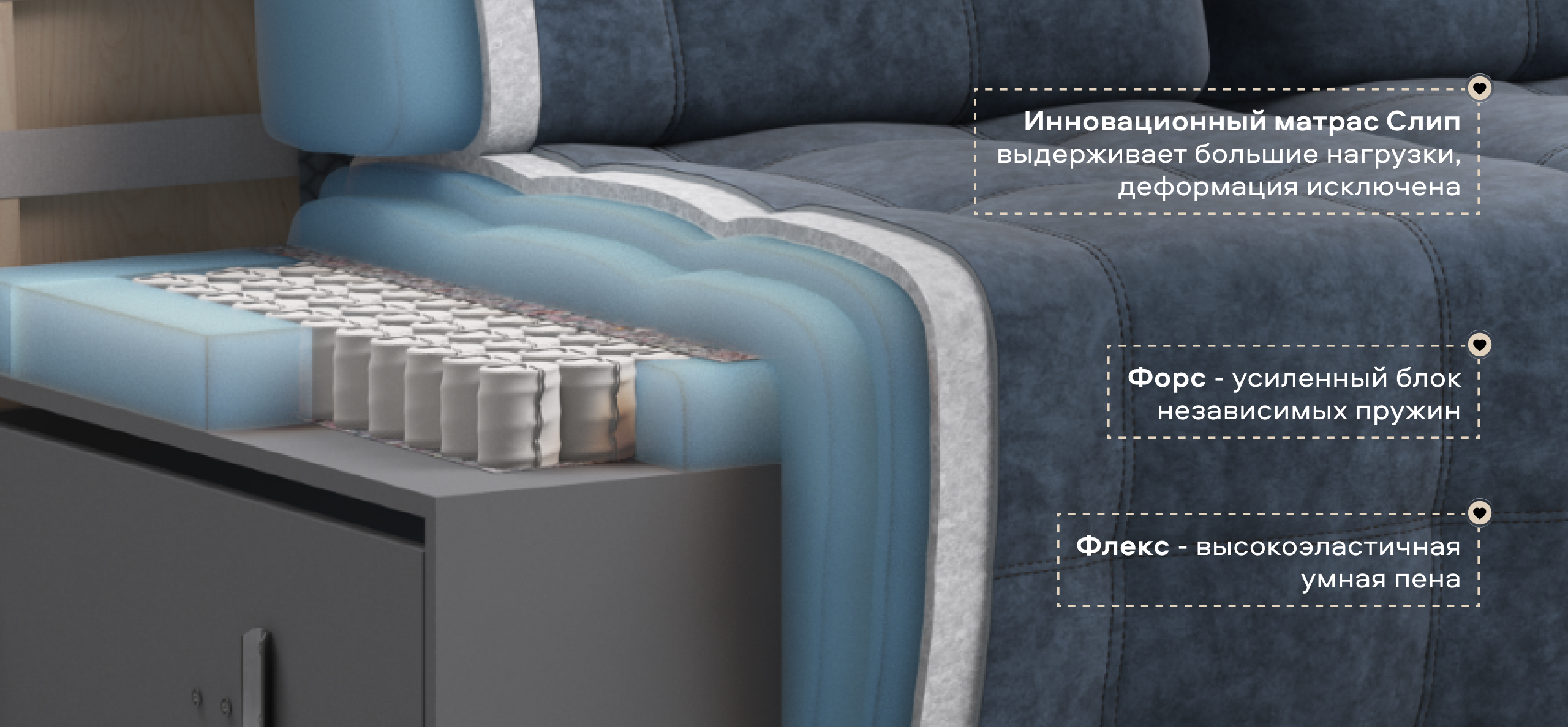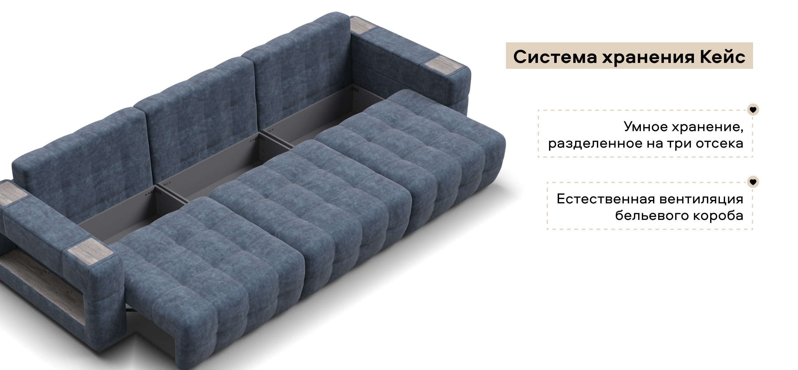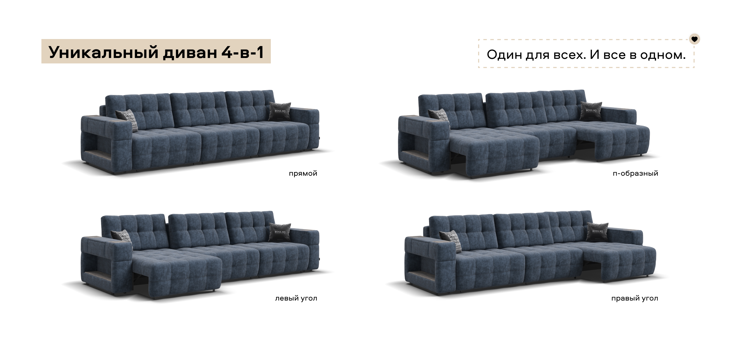 Босс ХО Макс - это и прямой, угловой и П-образный диван сразу, за 10 секунд вы можете превратить его в правый или левый угол, а также в П-образный.