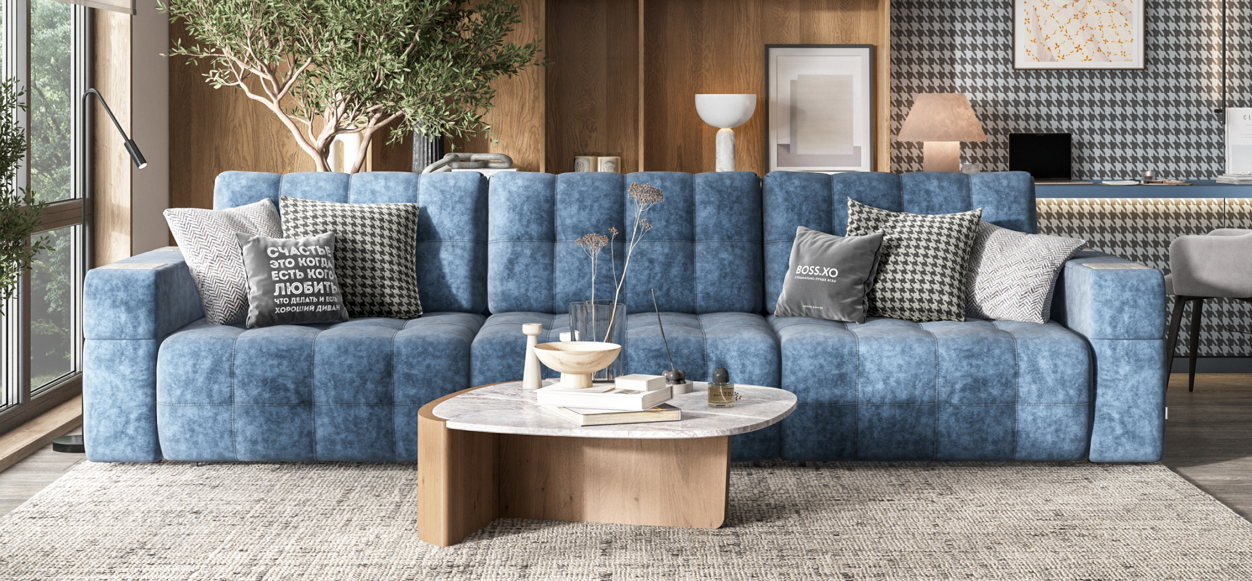 Диван Босс ХО Макс велюр Роял синий / Камень