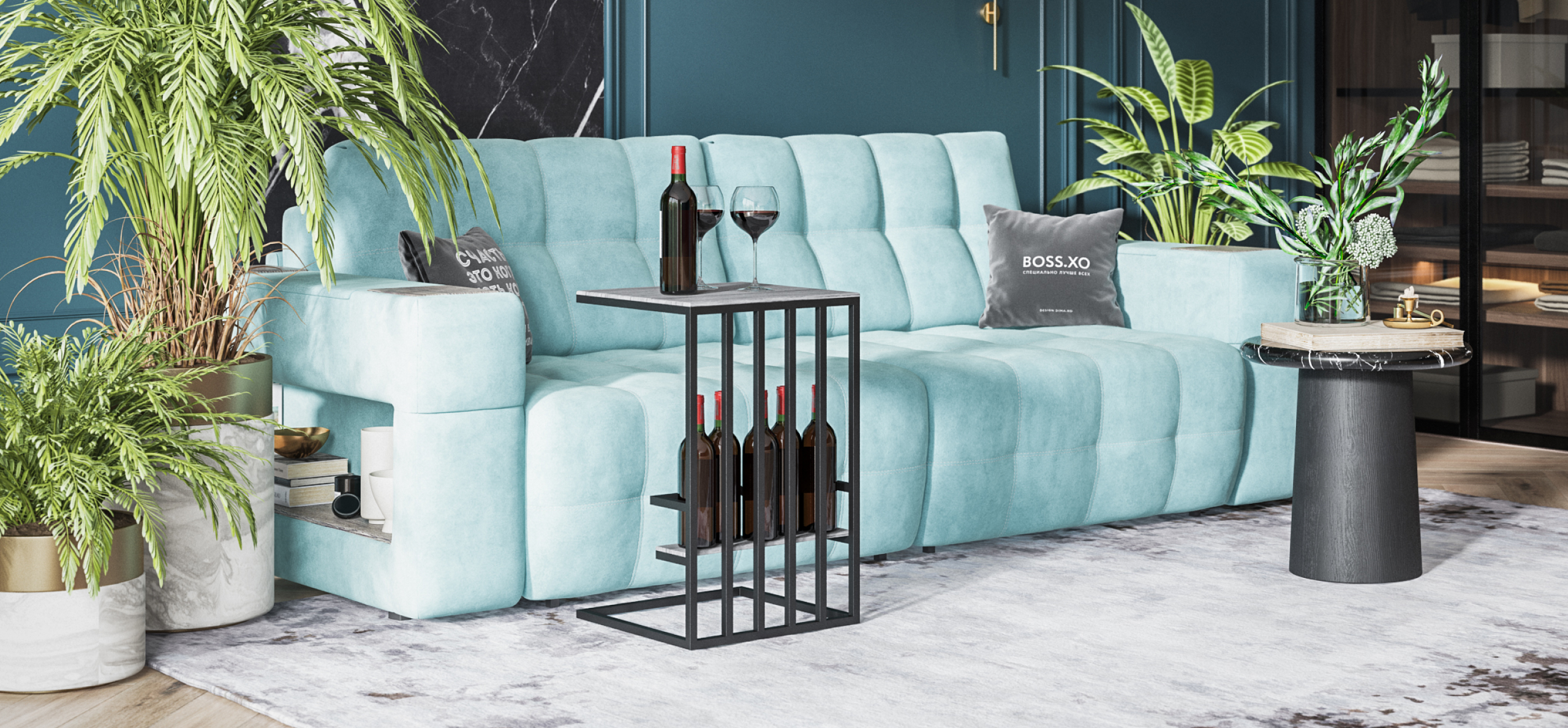 Диван Босс ХО велюр Монолит аква / Снежная Сонома