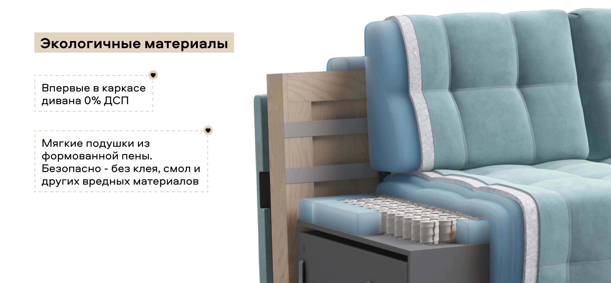 Покупая диван BOSS.XO вы становитесь обладателем уникальных подарков: быстрая зарядка для смартфона, 2 стильных кружки, 2 удобных столика для ноутбука, 2 подушки, комплект запасных накладок на подлокотники, Фул экоручки и средство для чистки Босс Клин.Преимущества материала