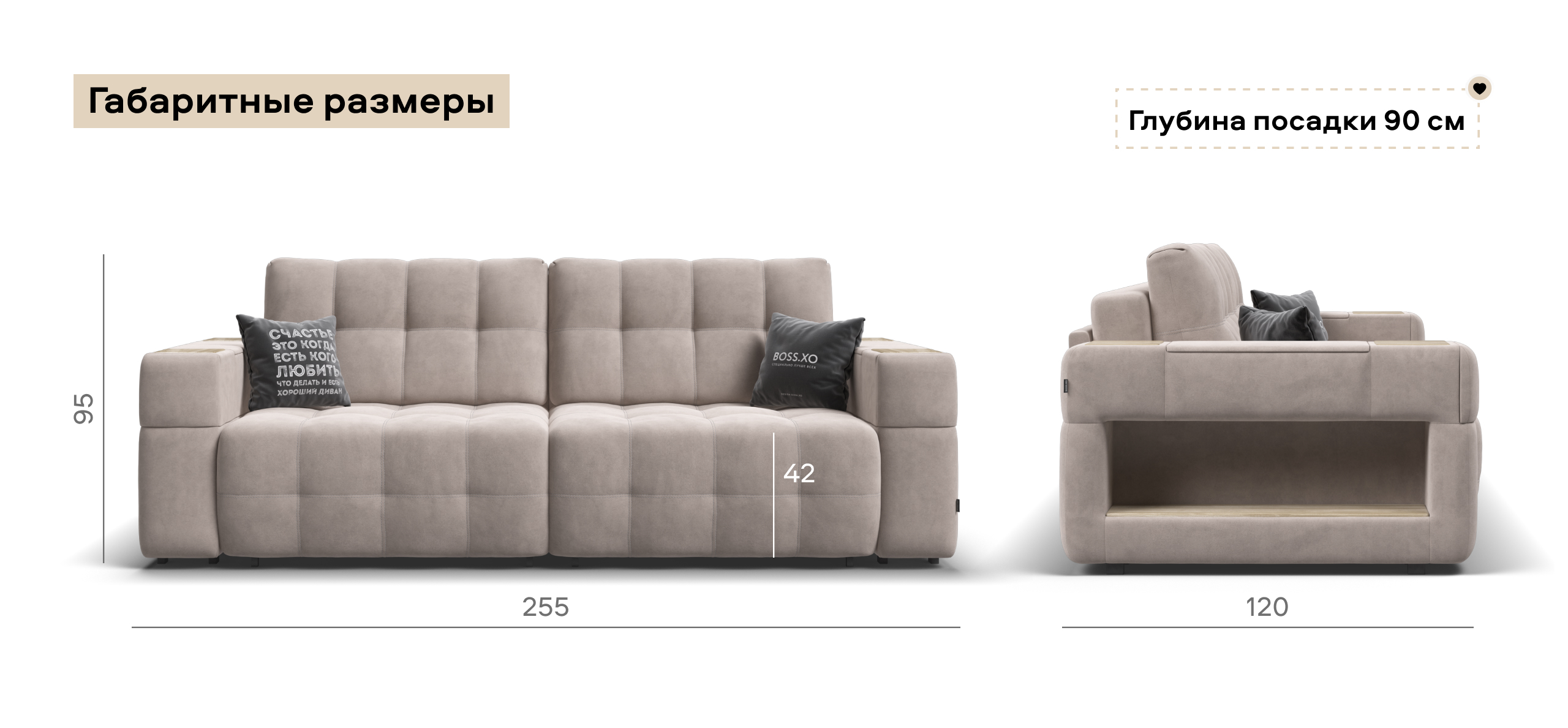 Диван Босс ХО велюр Монолит латте / Снежная Сонома