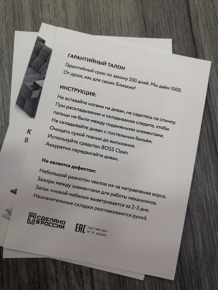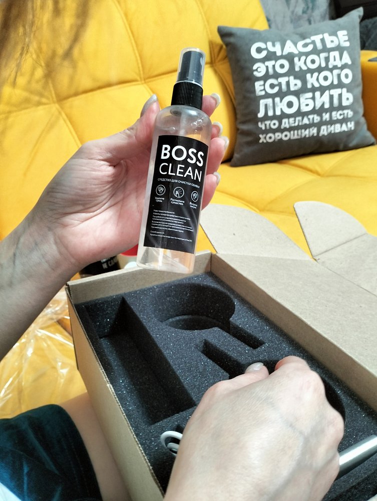 Покупая диван BOSS.XO вы становитесь обладателем уникальных подарков: быстрая зарядка для смартфона, 2 стильных кружки, 2 удобных столика для ноутбука, 2 подушки, комплект запасных накладок на подлокотники, Фул экоручки и средство для чистки Босс Клин.Преимущества материала