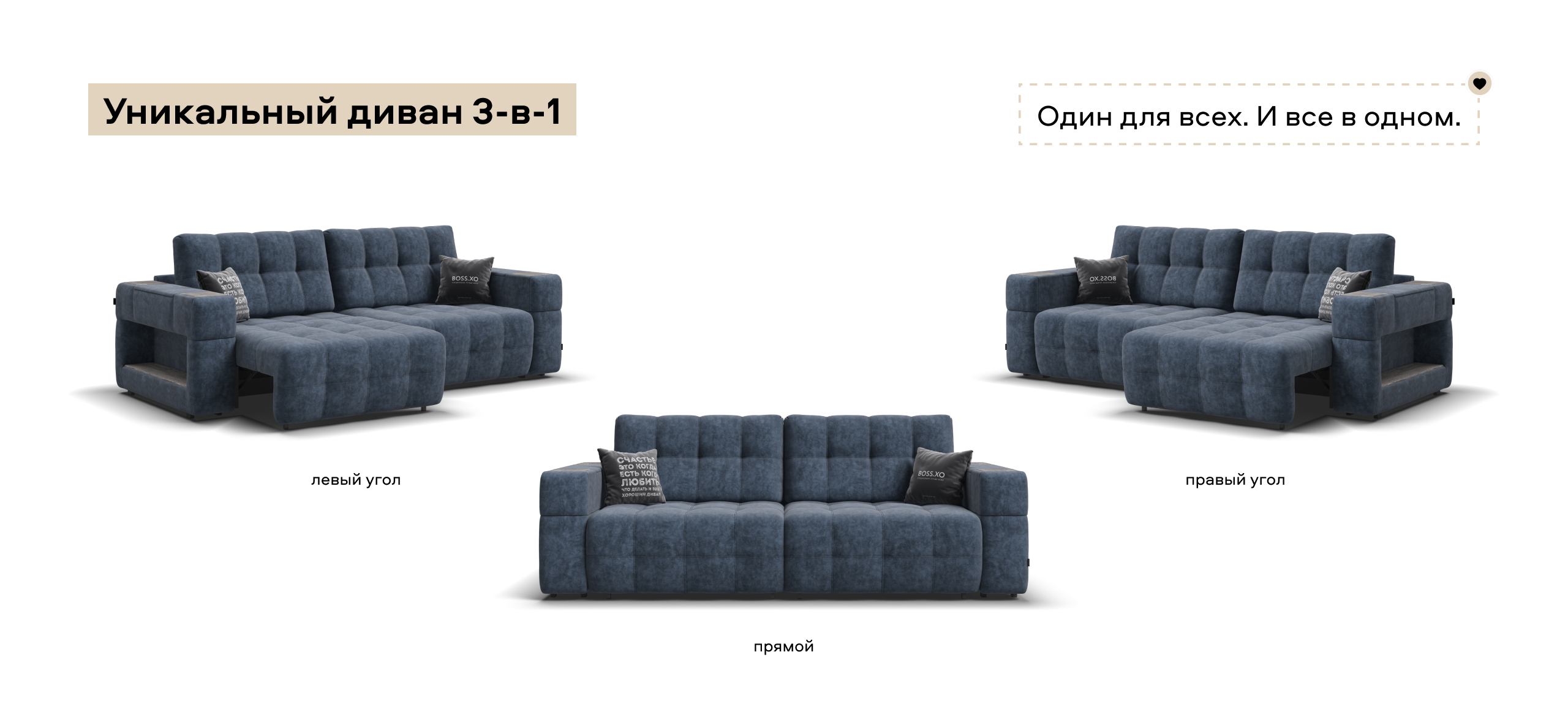 Босс ХО - это и прямой и угловой диван сразу, за 10 секунд вы можете превратить его в правый или левый угол.