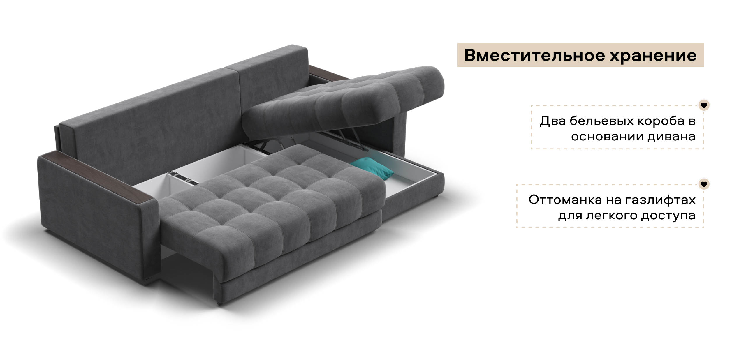 Продуманный до мелочей диван Босс сочетает в себе мягкие ткани, надежный каркас, качественное наполнение матраса и быструю сборку за 1 минуту без инструментов - ощутите комфорт у себя дома!