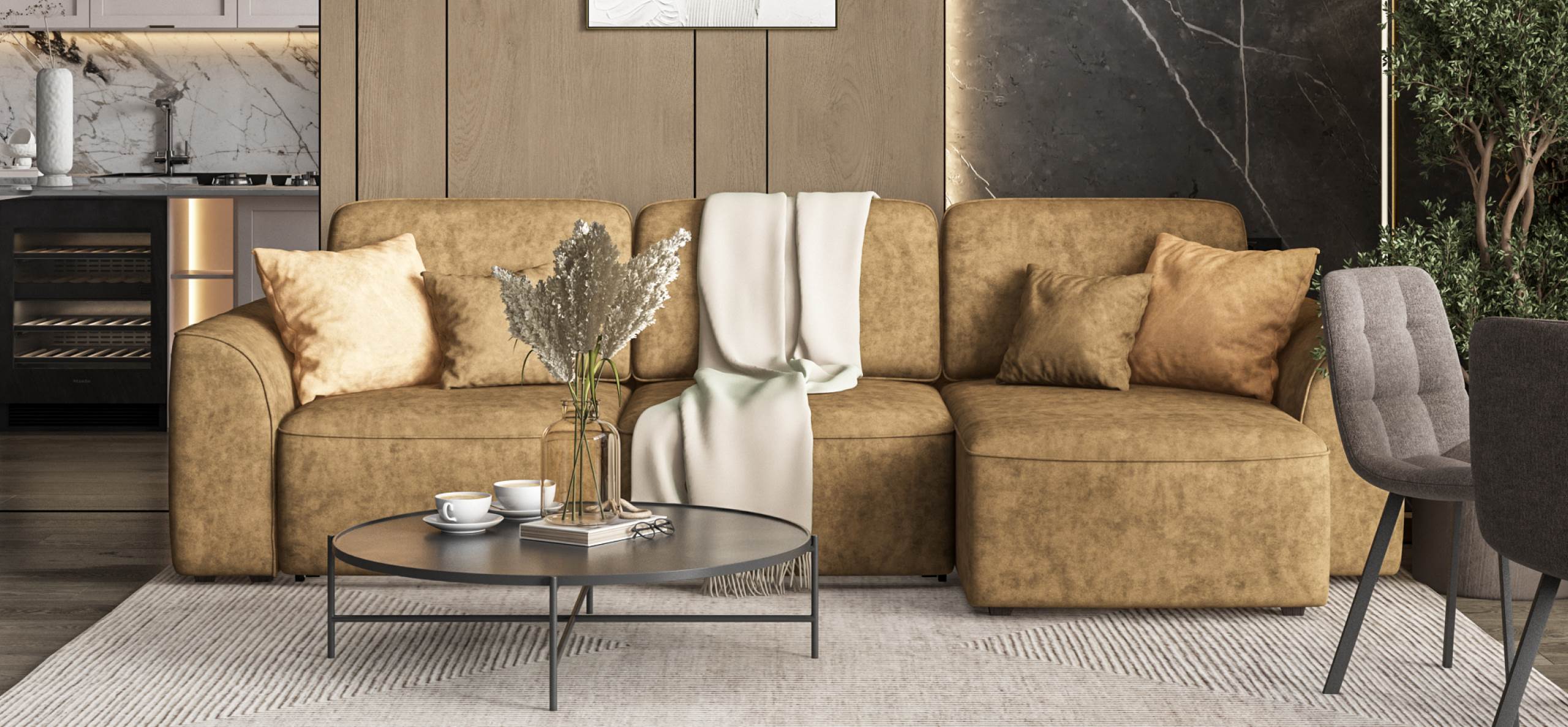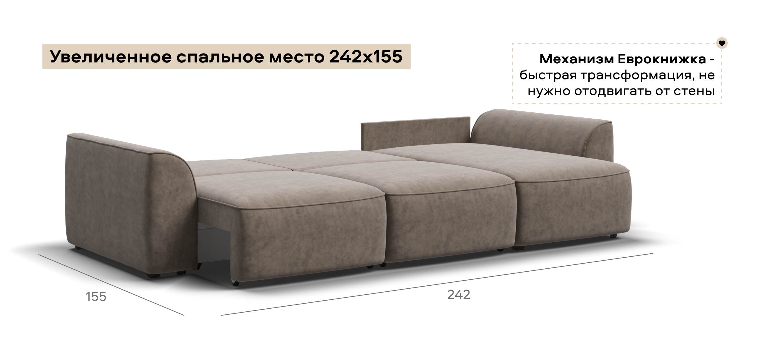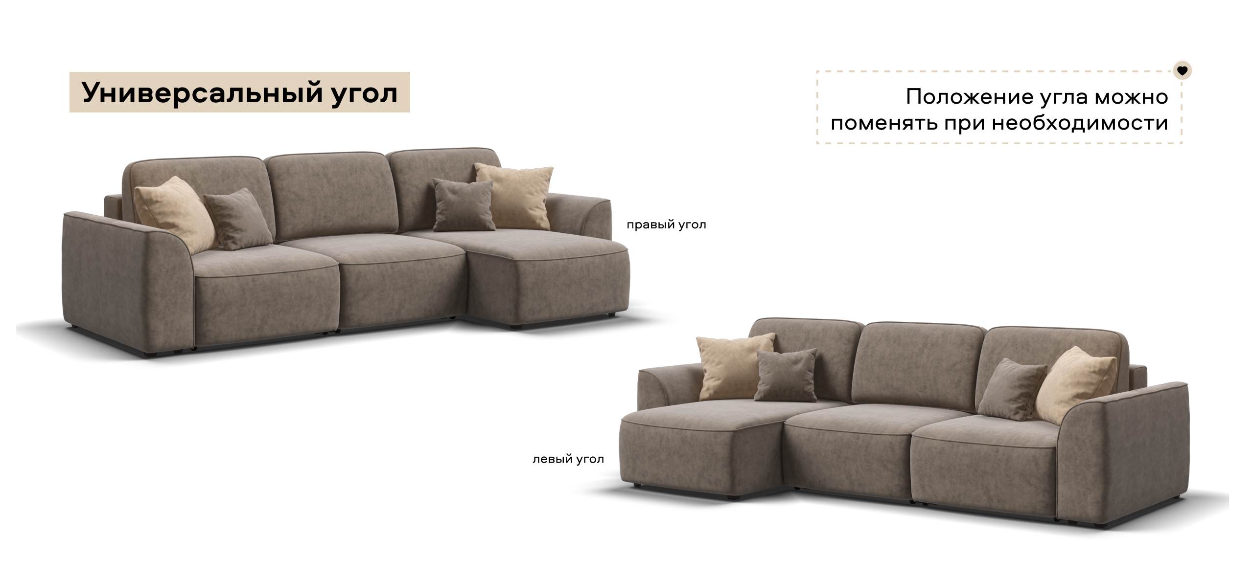 Комфортная посадка, скругленные линии, объемные подушки - диван, который наполнит ваш дом уютом и комфортом. Универсальный угол позволит Вам самостоятельно выбрать его положение при сборке, а каждое посадочное место можно выдвинуть вперед и получить П-образную форму дивана, на котором с комфортом разместится большая компания. А в разложенном виде диван превращается в комфортное спальное место.