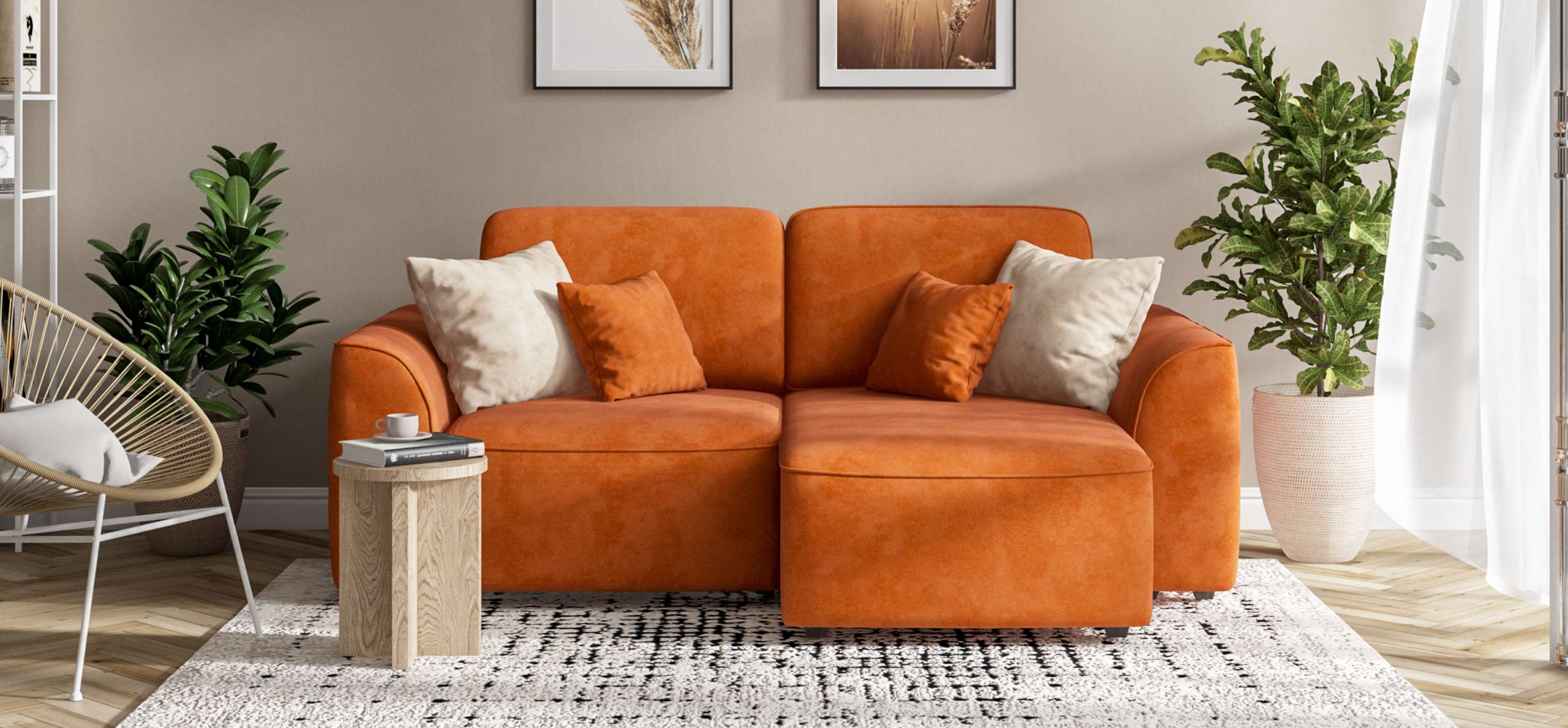 Угловой диван Кинг Модуль велюр Алькантара оранж