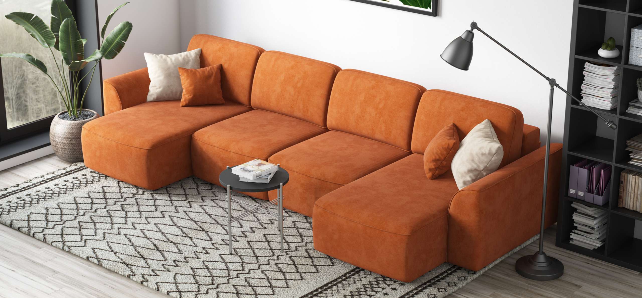 П-образный диван Кинг Модуль велюр Алькантара оранж