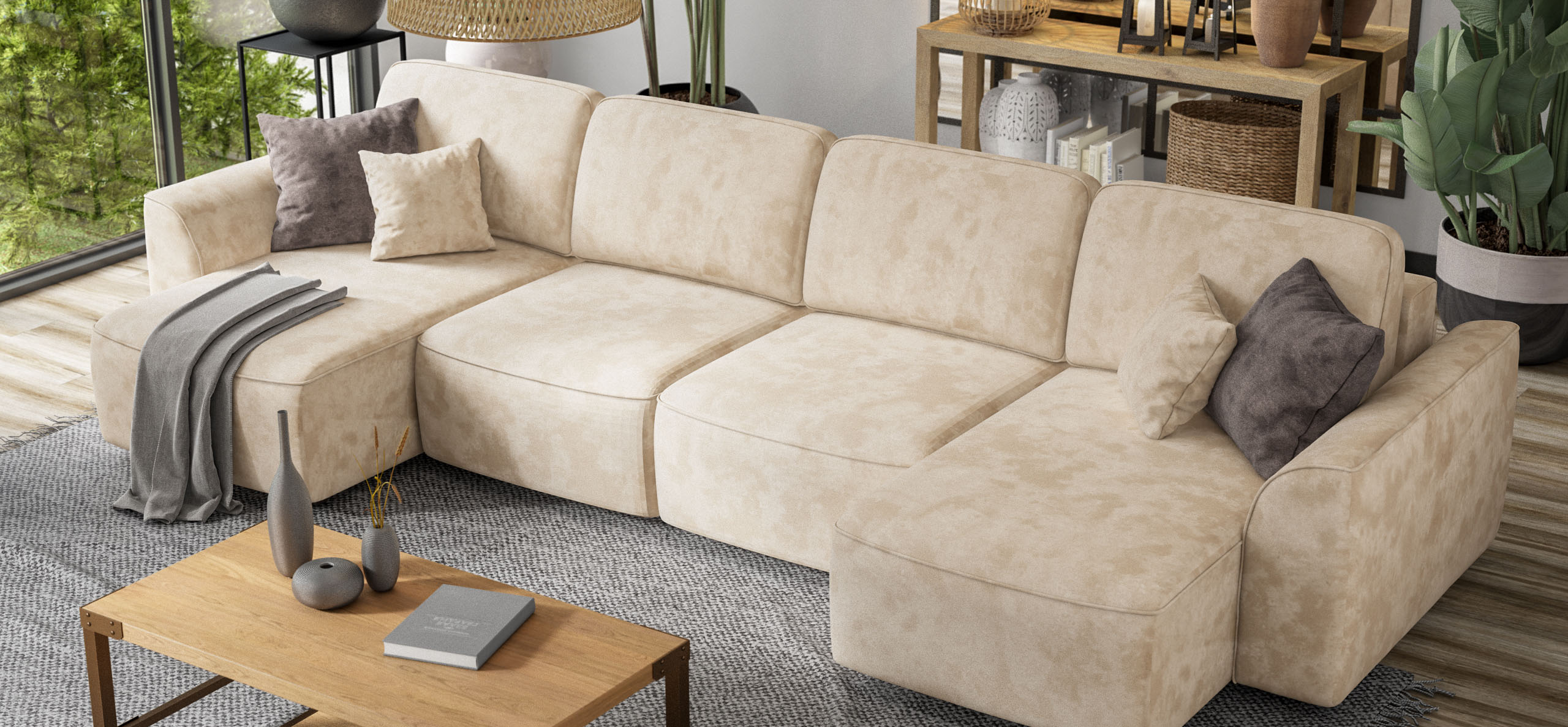 П-образный диван Кинг Модуль велюр Алькантара пепел