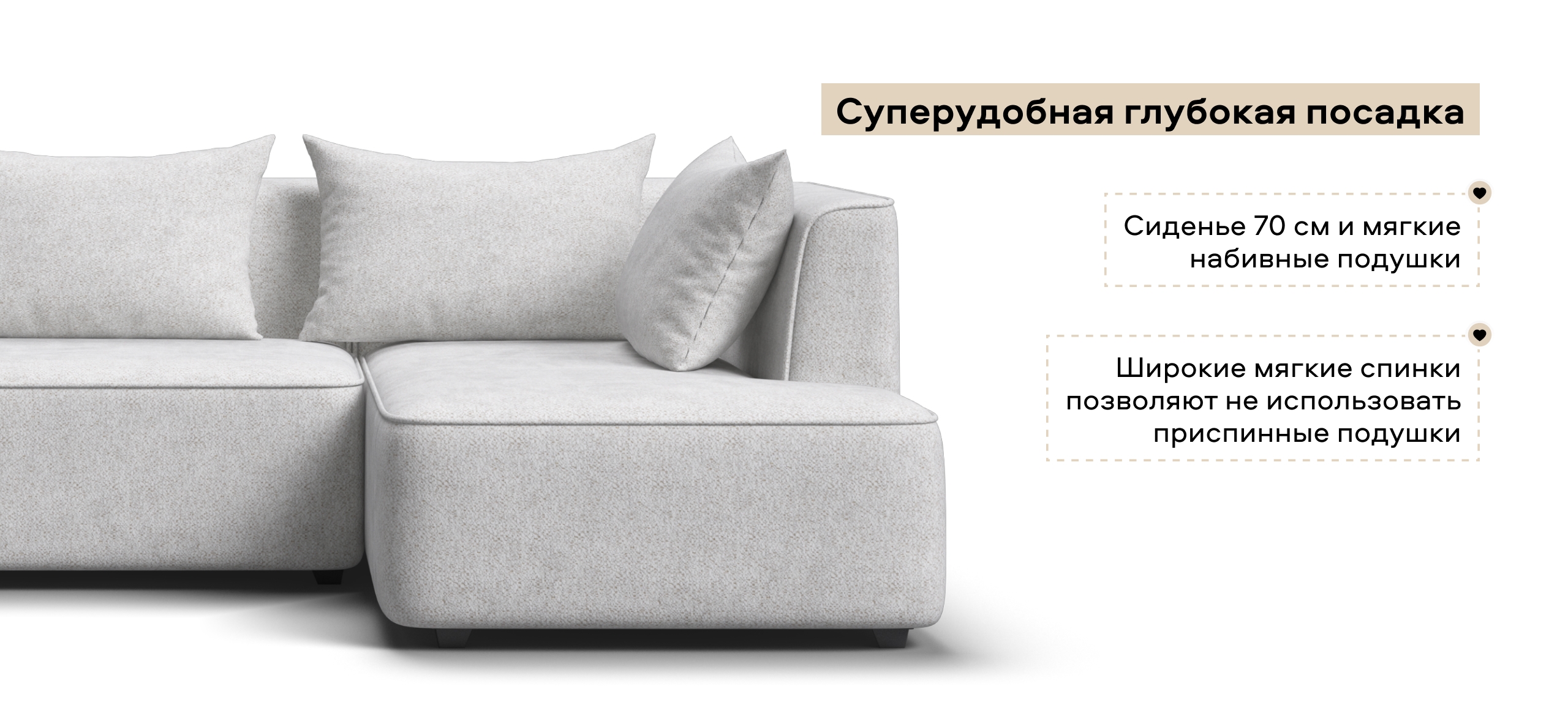 Глубокое сиденье и независимые пружины в основании словно созданы для полного расслабления, а мягкие спинки обеспечивают комфорт без лишних подушек.