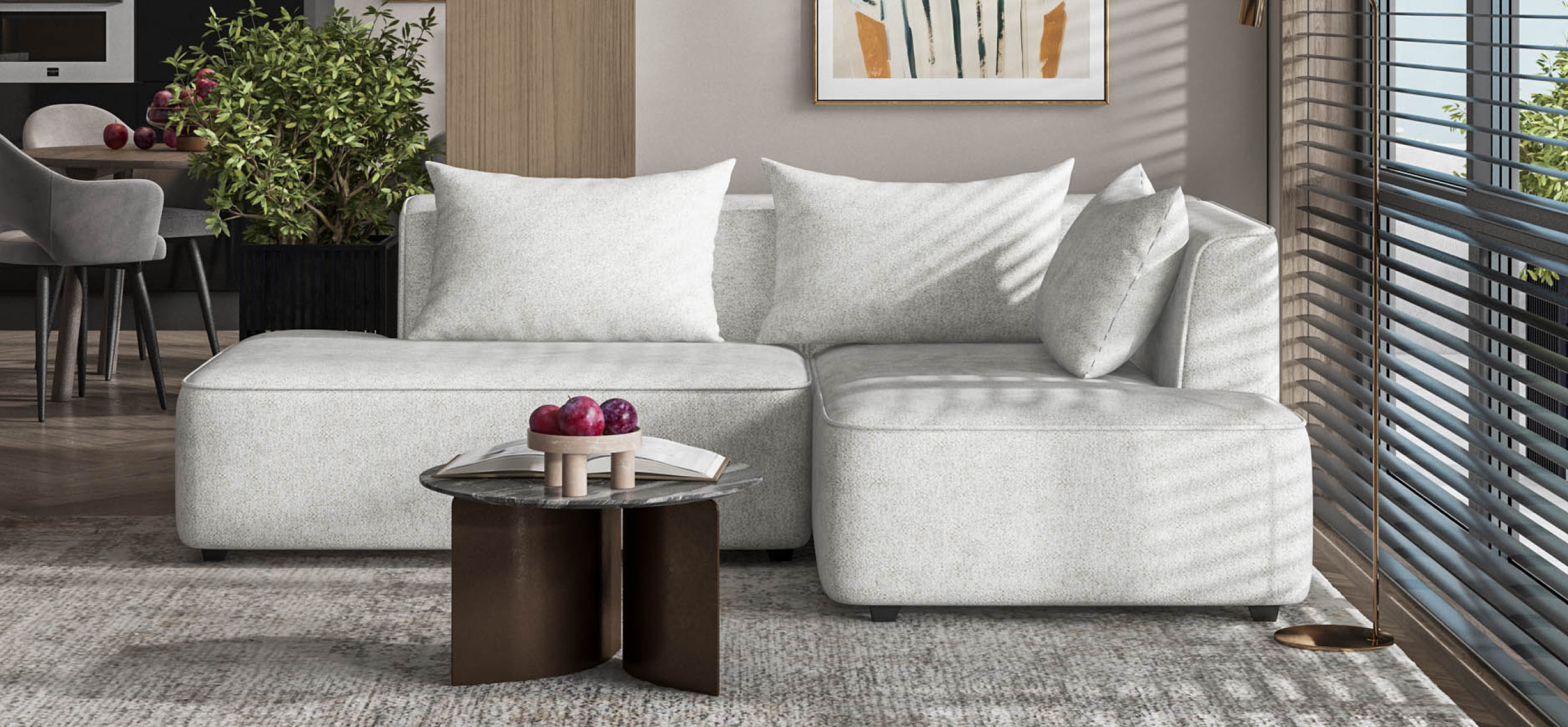 Благодаря инновационной системе креплений и быстросъёмным элементам Вы с лёгкостью можете поменять конфигурацию и адаптировать диван под новое пространство.