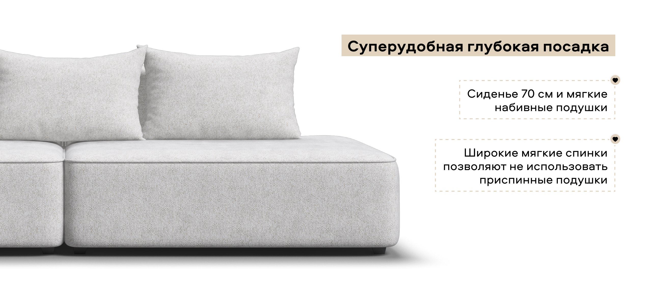 Глубокое сиденье и независимые пружины в основании словно созданы для полного расслабления, а мягкие спинки обеспечивают комфорт без лишних подушек.