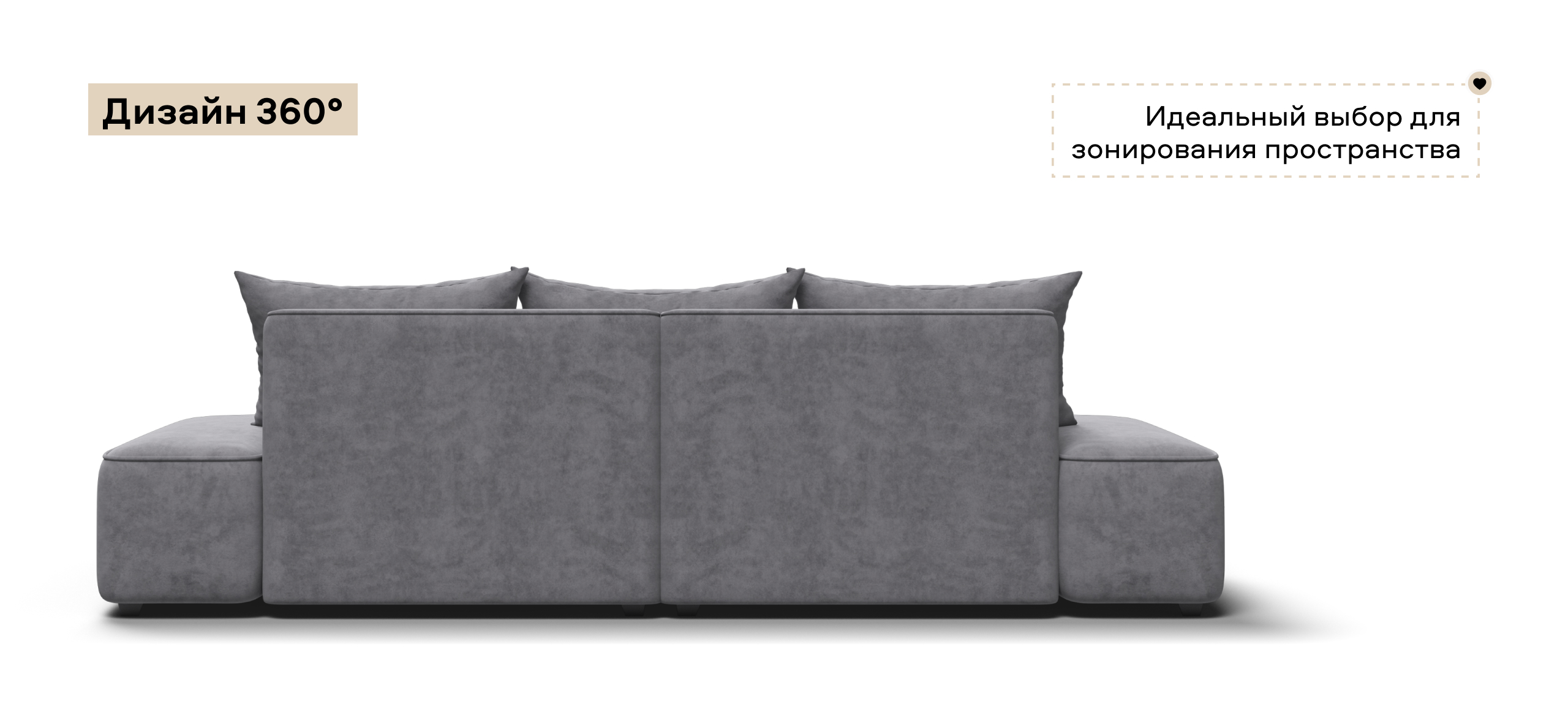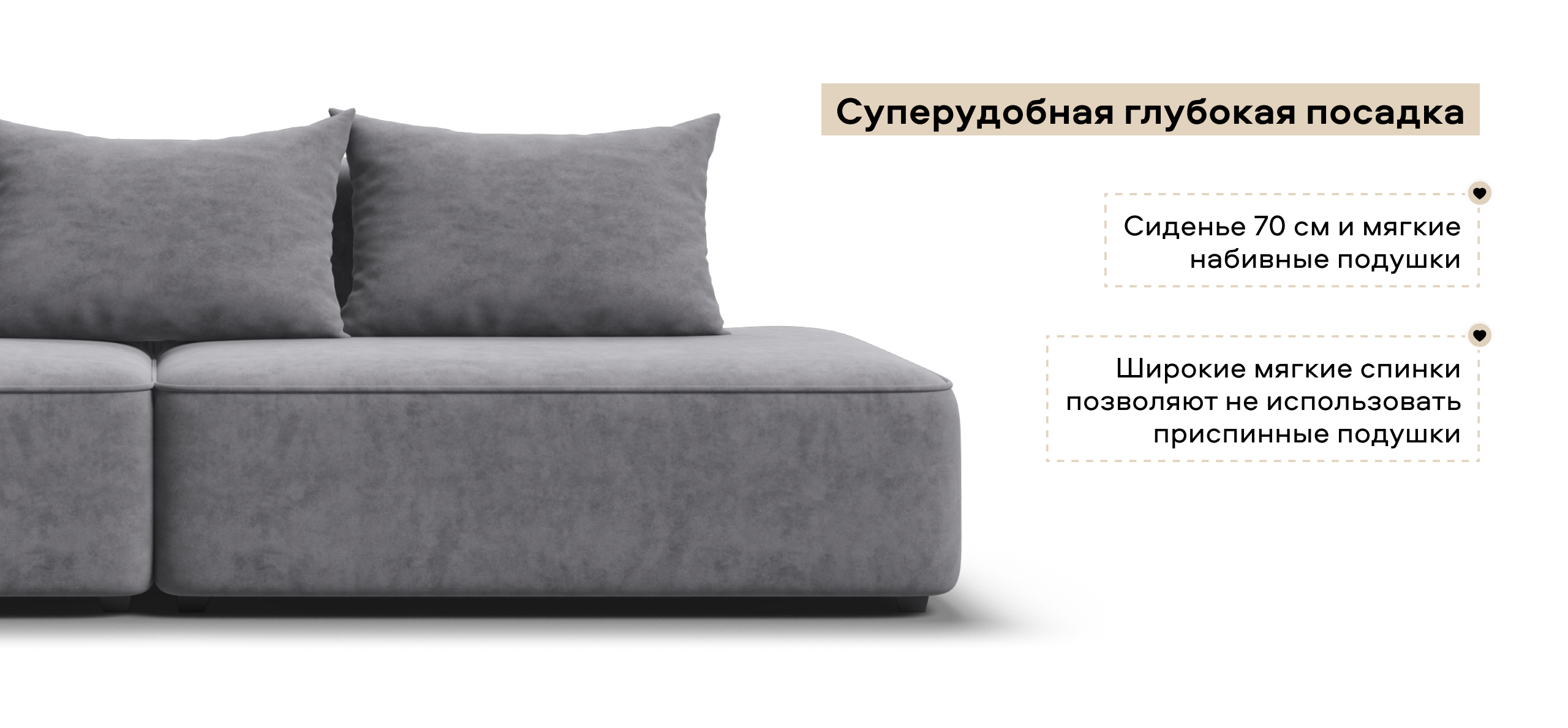 Благодаря инновационной системе креплений и быстросъёмным элементам Вы с лёгкостью можете поменять конфигурацию и адаптировать диван под новое пространство.