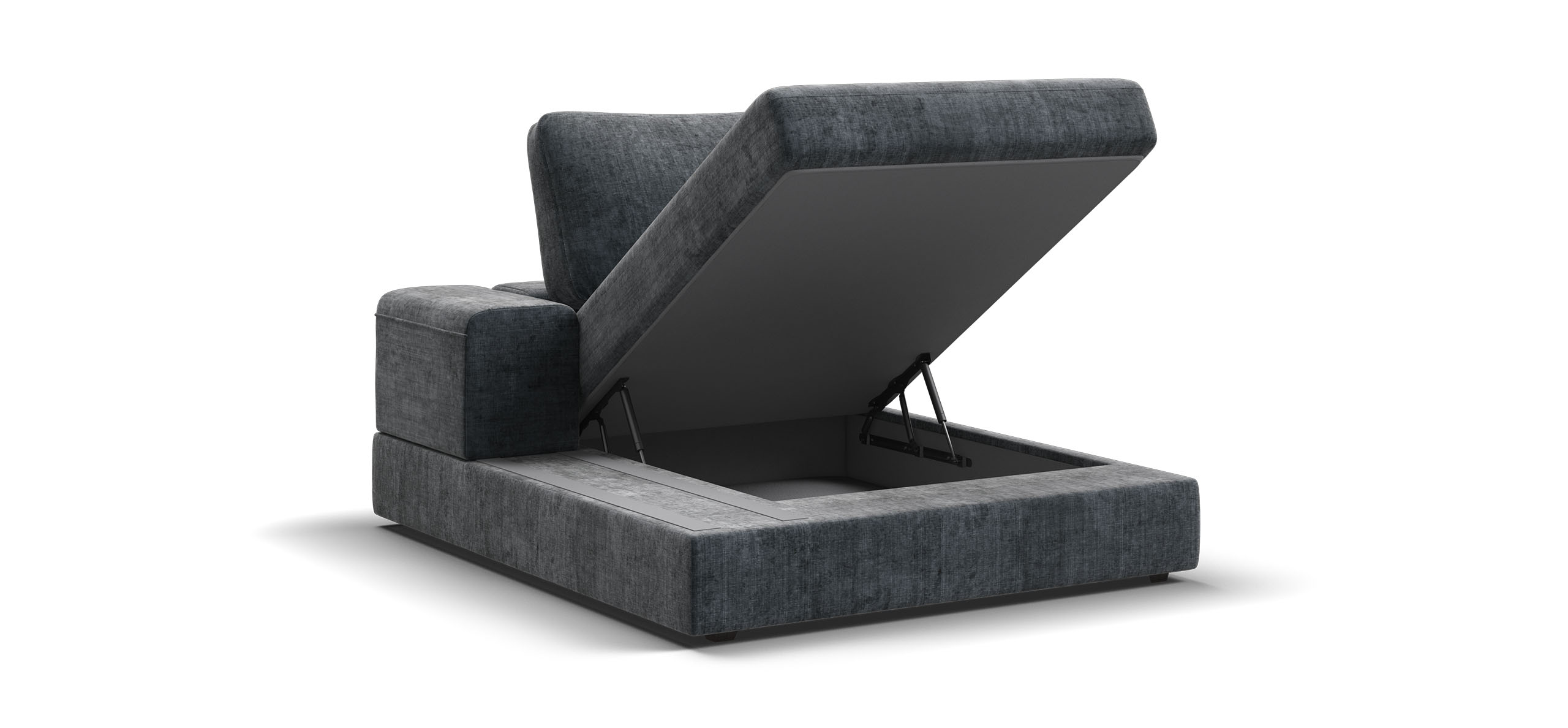 Металлический каркас обеспечивает долговечность и надежность. Диван выполнен с учетом последних требований в области экологии – не содержит ЛДСП, бельевые ящики из биоразлагаемого текстиля. Съёмные аксессуары помогут настроить необходимый вам функционал.