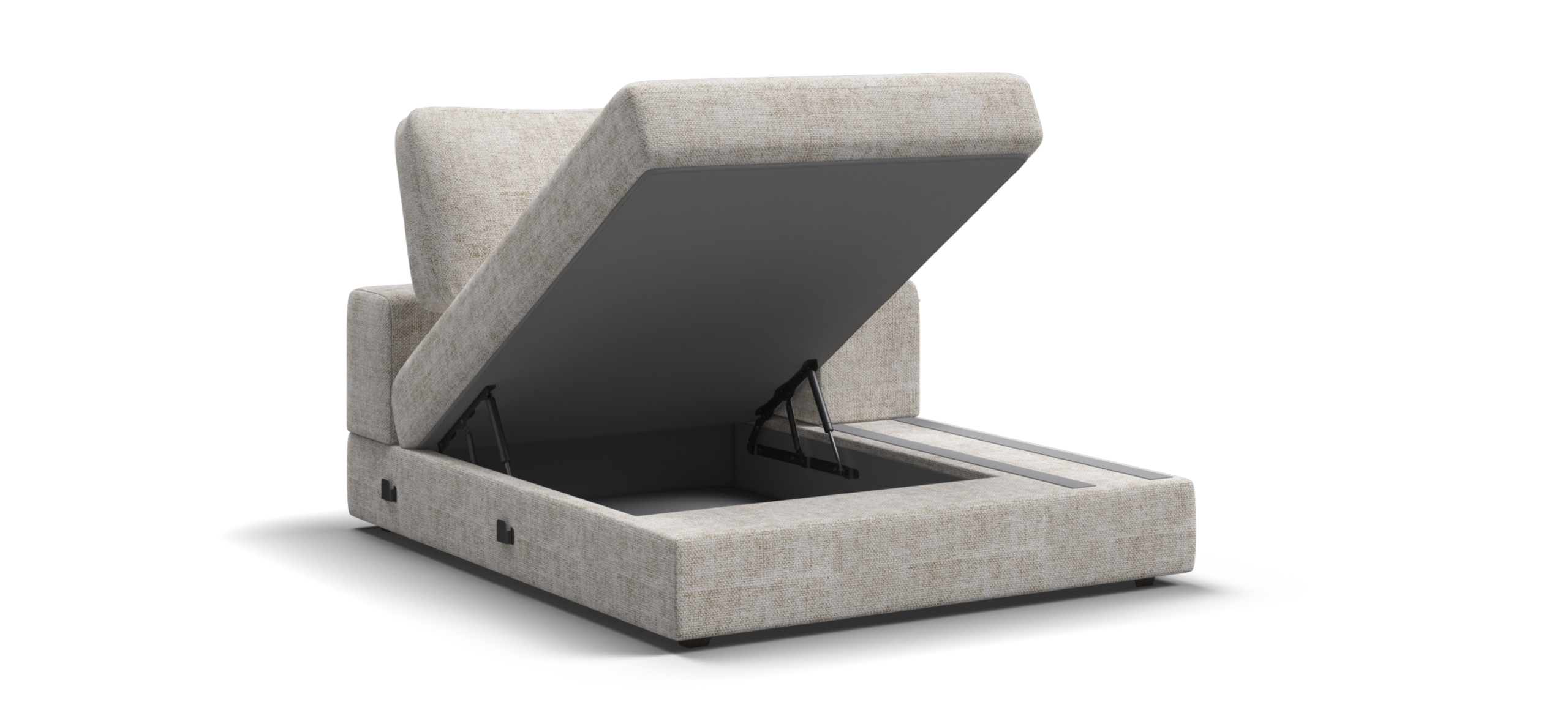 Металлический каркас обеспечивает долговечность и надежность. Диван выполнен с учетом последних требований в области экологии – не содержит ЛДСП, бельевые ящики из биоразлагаемого текстиля. Съёмные аксессуары помогут настроить необходимый вам функционал.