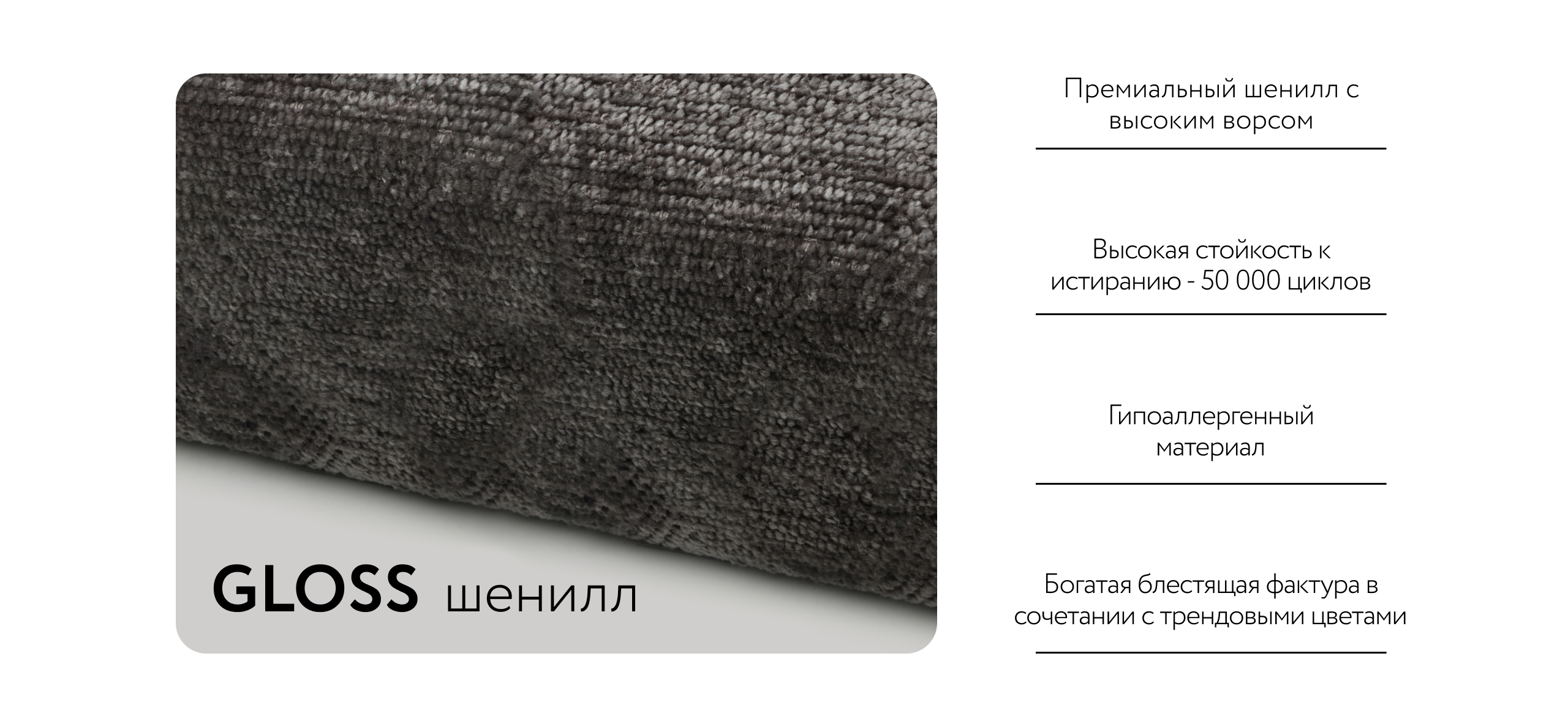 - Премиальный шенилл с высоким ворсом