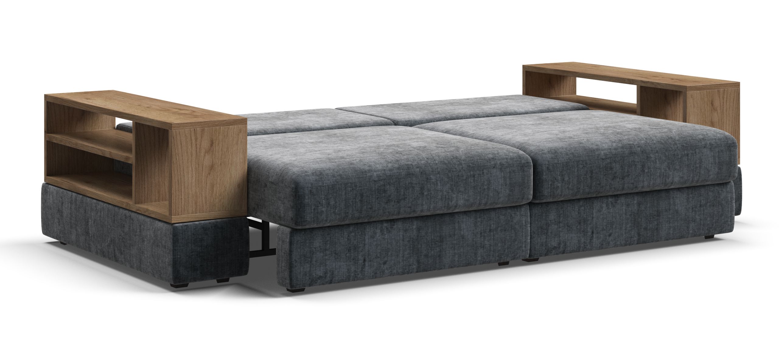 Металлический каркас обеспечивает долговечность и надежность. Диван выполнен с учетом последних требований в области экологии – не содержит ЛДСП, бельевые ящики из биоразлагаемого текстиля. Съёмные аксессуары помогут настроить необходимый вам функционал.
