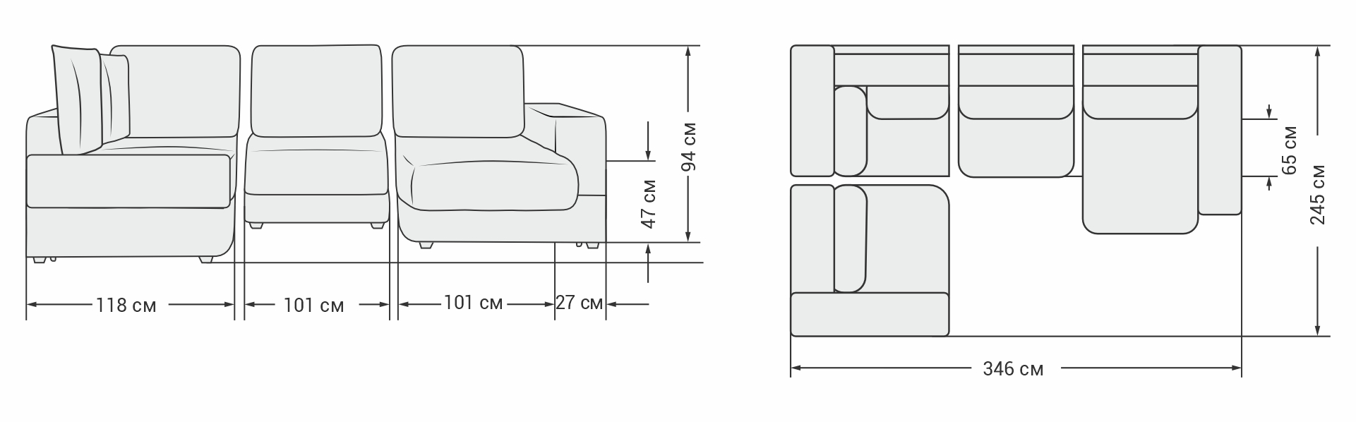 П-образный диван-кровать Босс Модуль Шенилл Смарт кварц