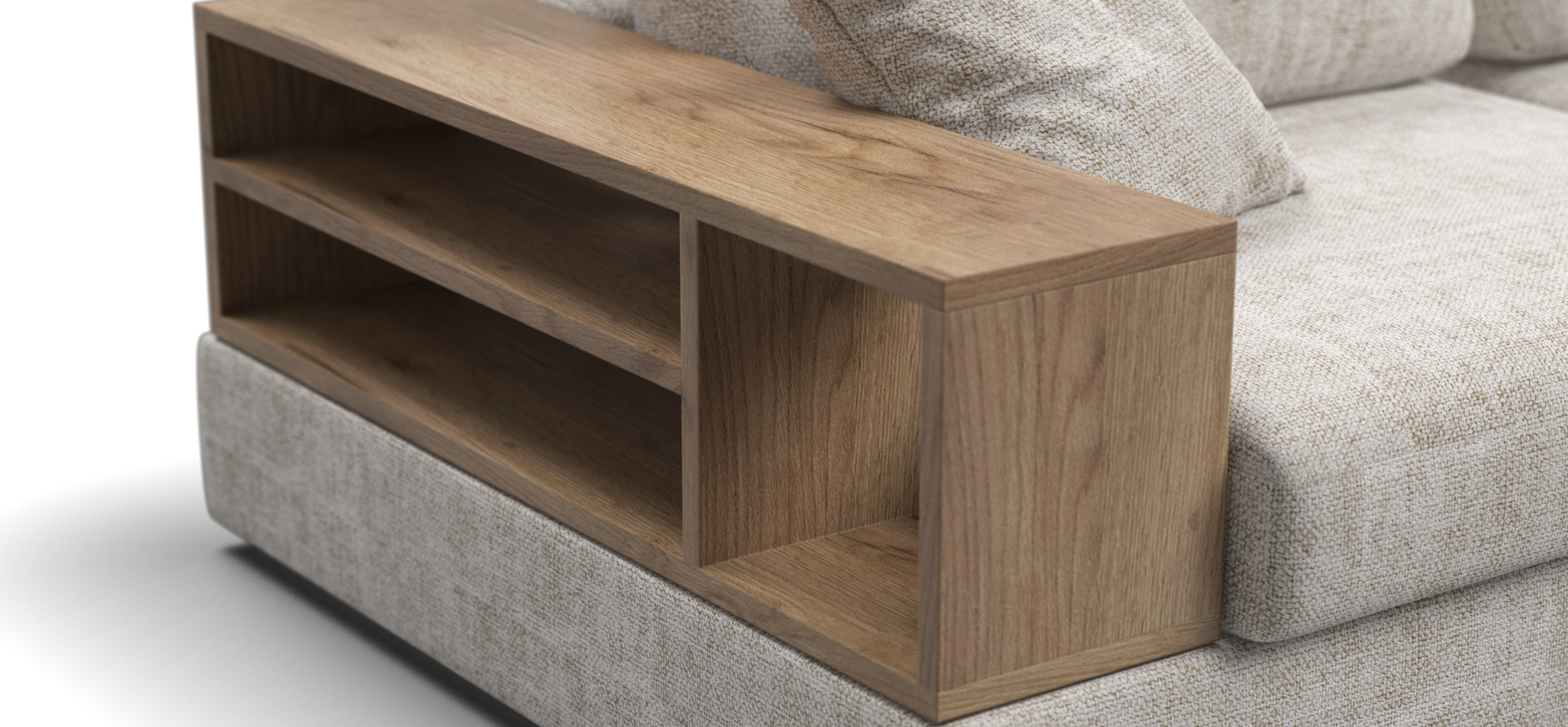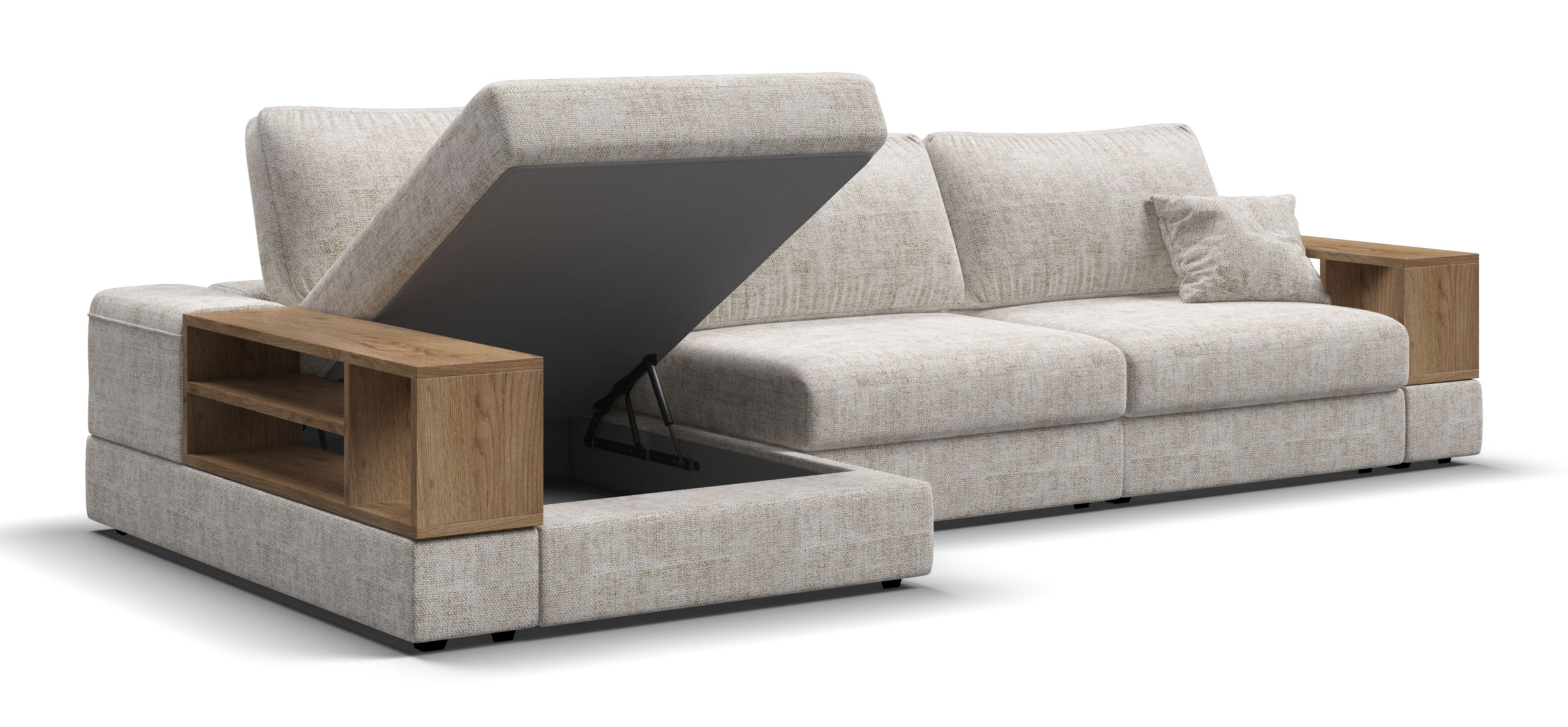 Металлический каркас обеспечивает долговечность и надежность. Диван выполнен с учетом последних требований в области экологии – не содержит ЛДСП, бельевые ящики из биоразлагаемого текстиля. Съёмные аксессуары помогут настроить необходимый вам функционал.