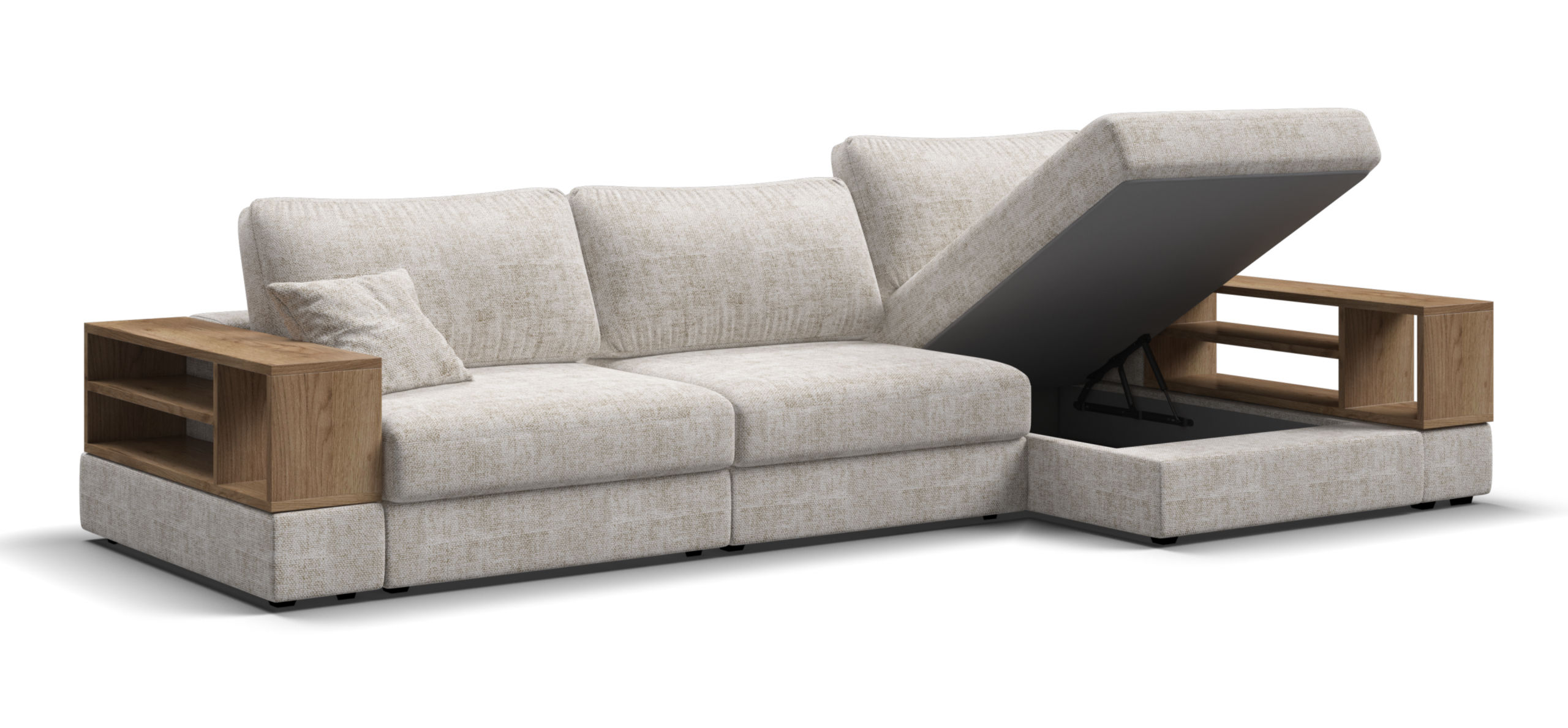 Металлический каркас обеспечивает долговечность и надежность. Диван выполнен с учетом последних требований в области экологии – не содержит ЛДСП, бельевые ящики из биоразлагаемого текстиля. Съёмные аксессуары помогут настроить необходимый вам функционал.