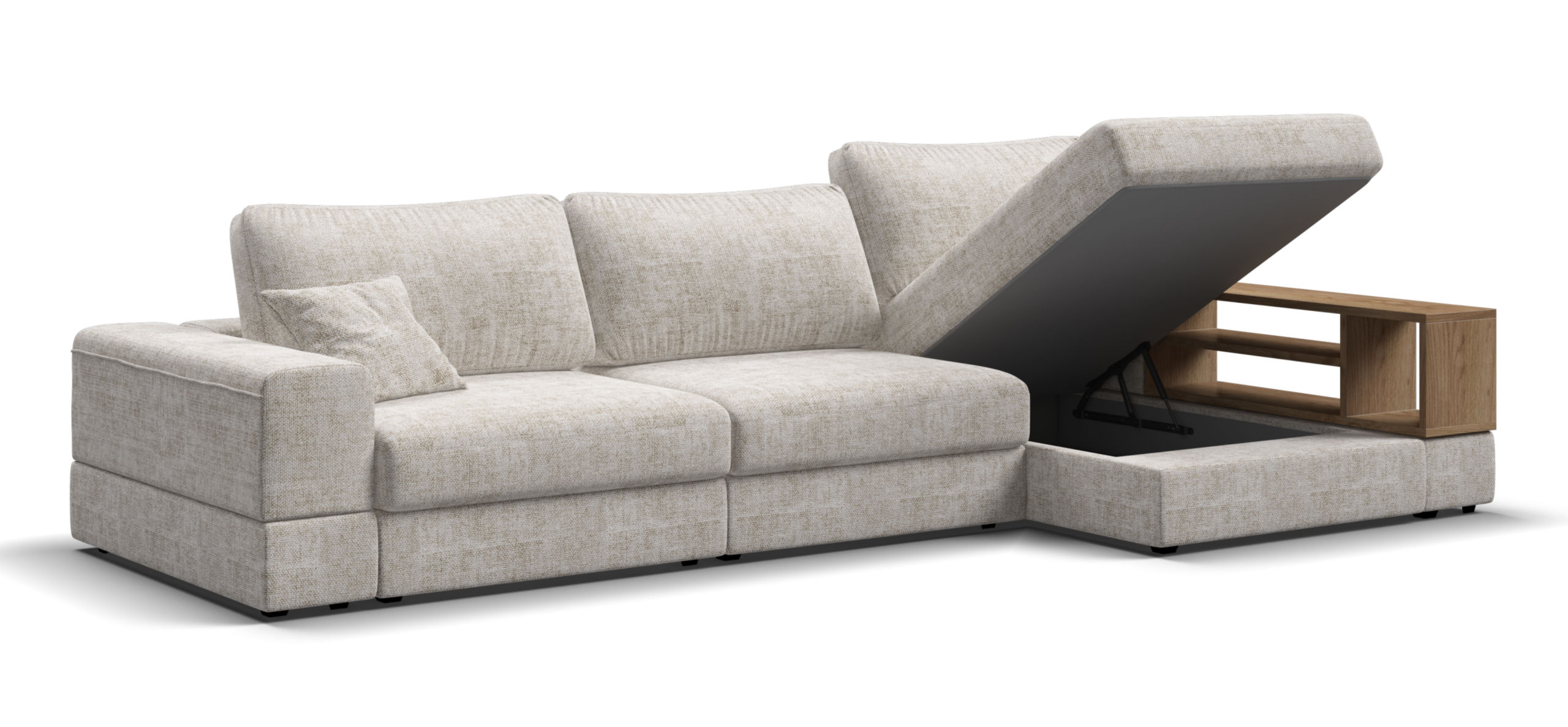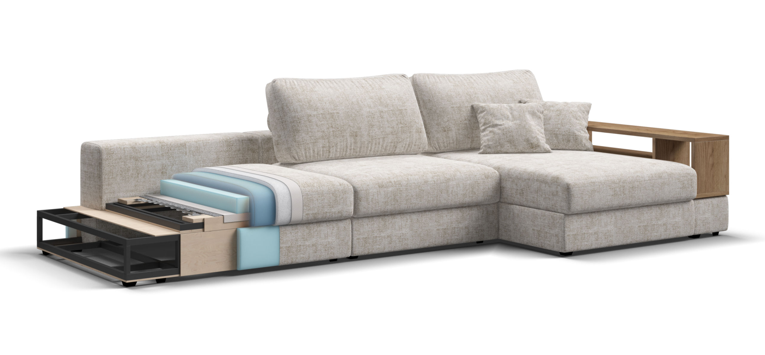 Металлический каркас обеспечивает долговечность и надежность. Диван выполнен с учетом последних требований в области экологии – не содержит ЛДСП, бельевые ящики из биоразлагаемого текстиля. Съёмные аксессуары помогут настроить необходимый вам функционал.