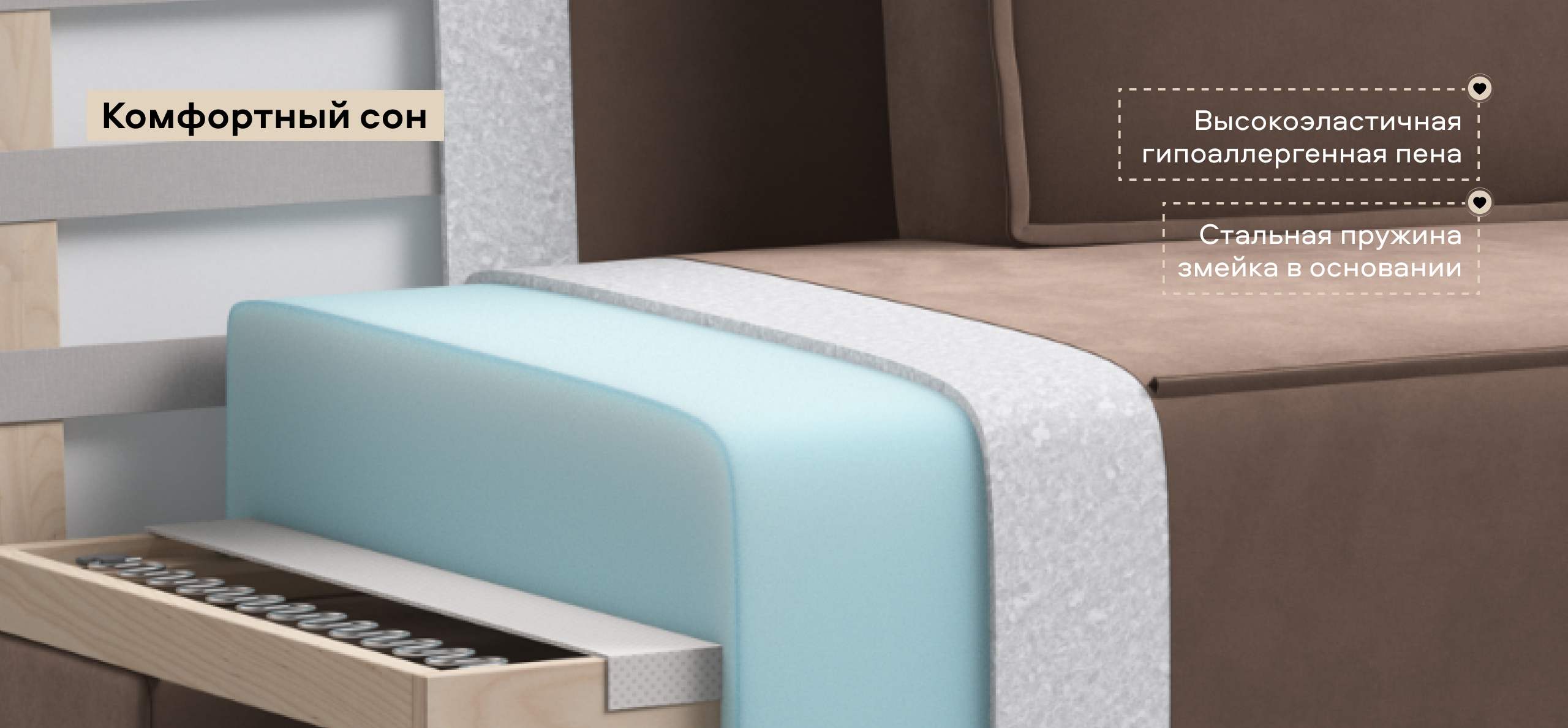 Ваш комфорт обеспечит матрас, выполненный из высокоэластичного ППУ, в сочетании со стальной пружинной змейкой в основании.