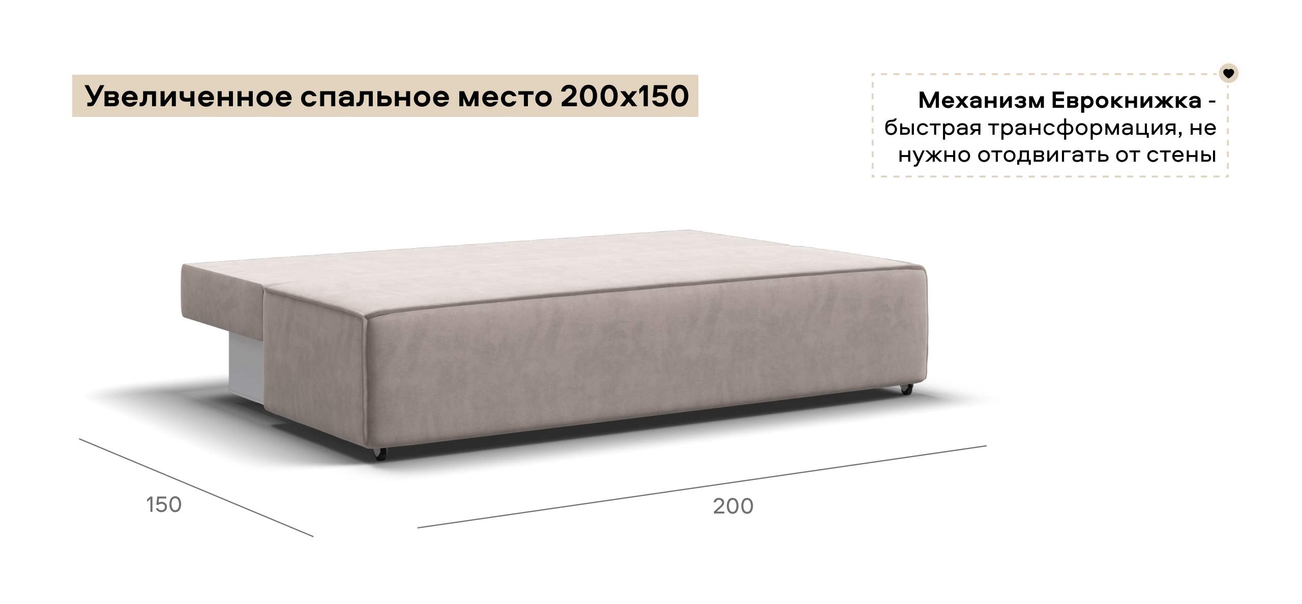 Днем вы с комфортом сможете провести время за просмотром любимого фильма, а ночью трансформировать диван в идеально ровное спальное место без стыков, благодаря анатомическому матрасу и надежному механизму еврокнижка.