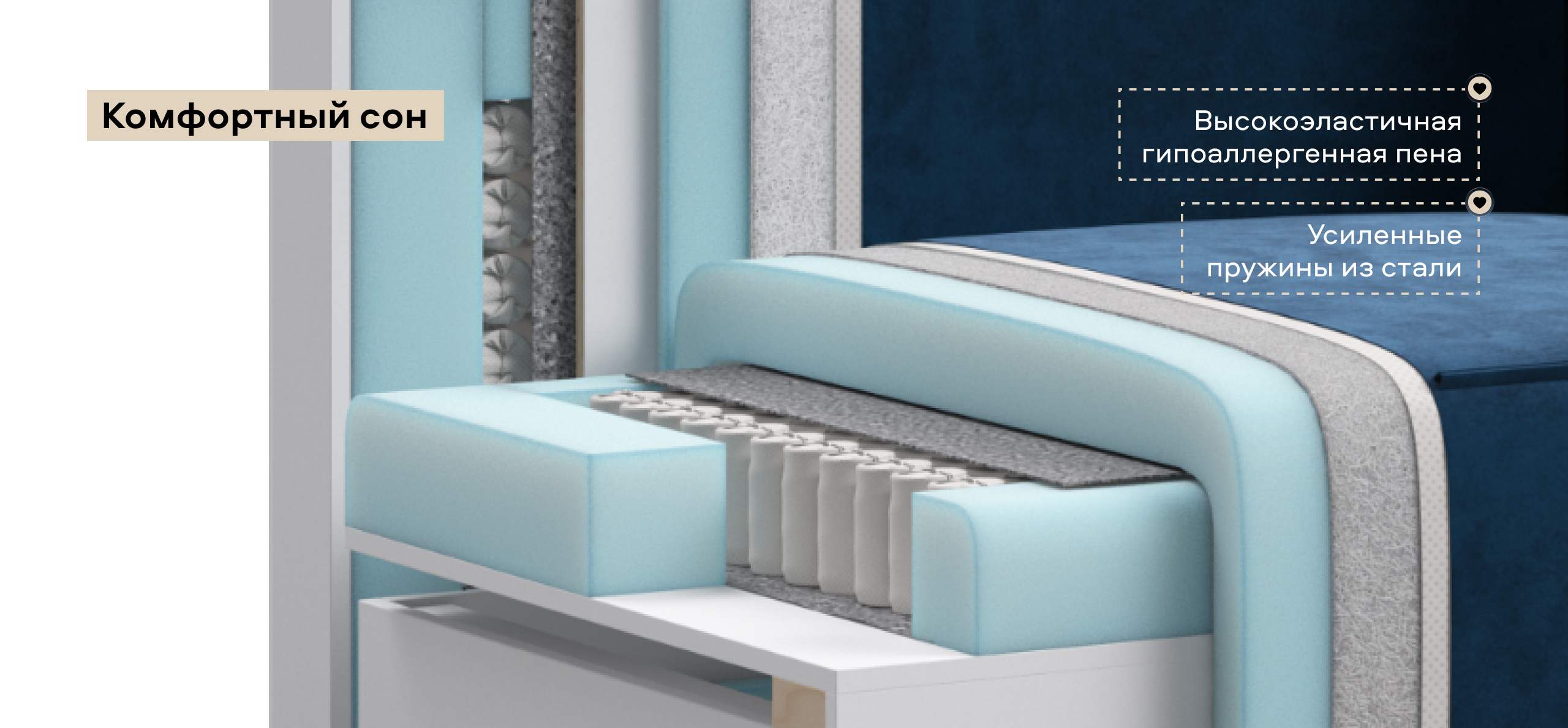 Днем вы с комфортом сможете провести время за просмотром любимого фильма, а ночью трансформировать диван в идеально ровное спальное место без стыков, благодаря анатомическому матрасу и надежному механизму еврокнижка.