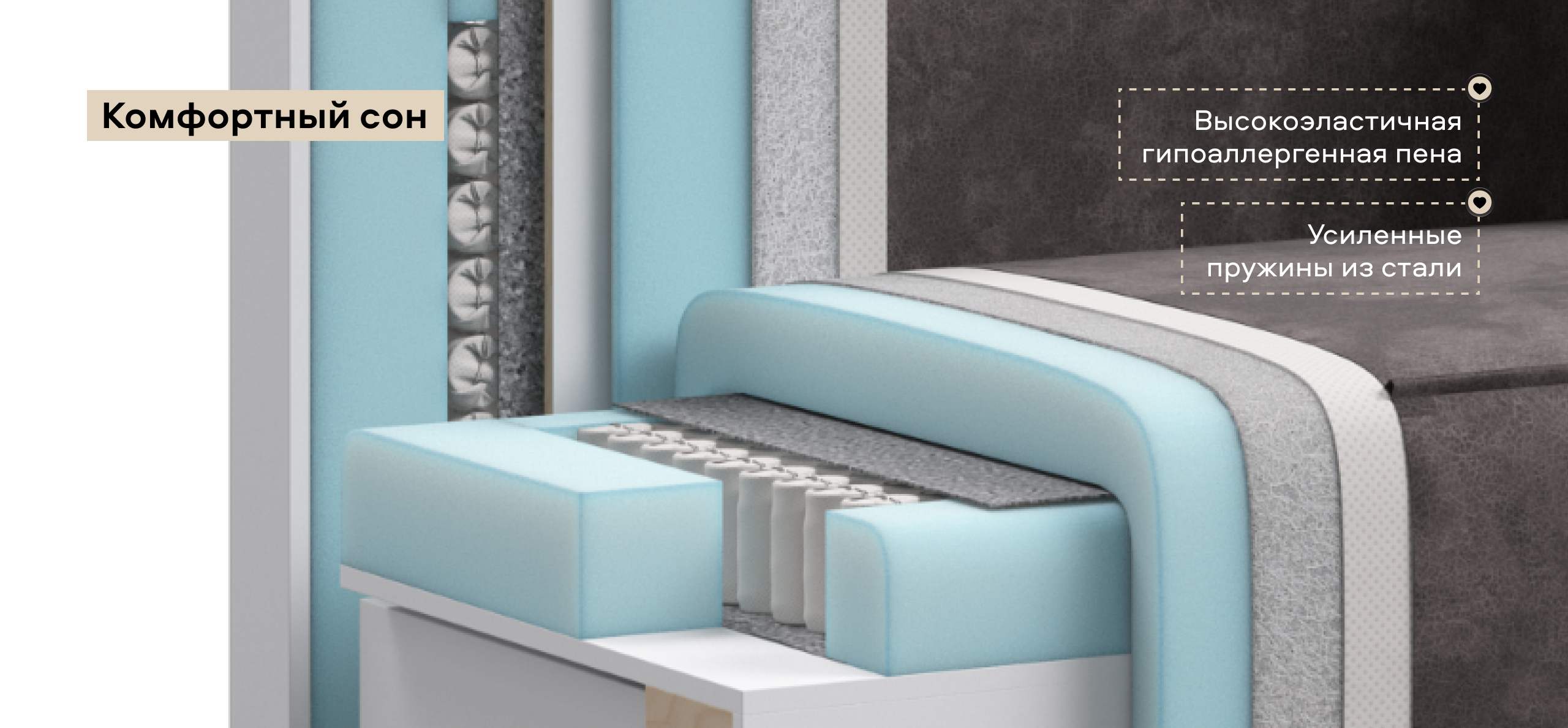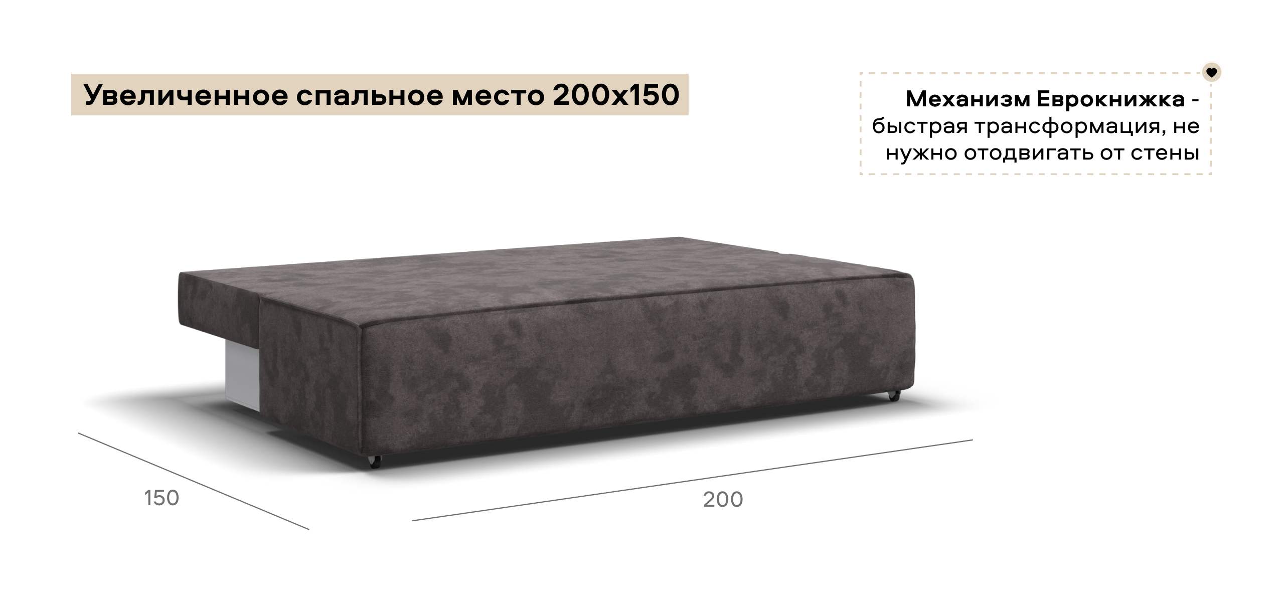 Днем вы с комфортом сможете провести время за просмотром любимого фильма, а ночью трансформировать диван в идеально ровное спальное место без стыков, благодаря анатомическому матрасу и надежному механизму еврокнижка.