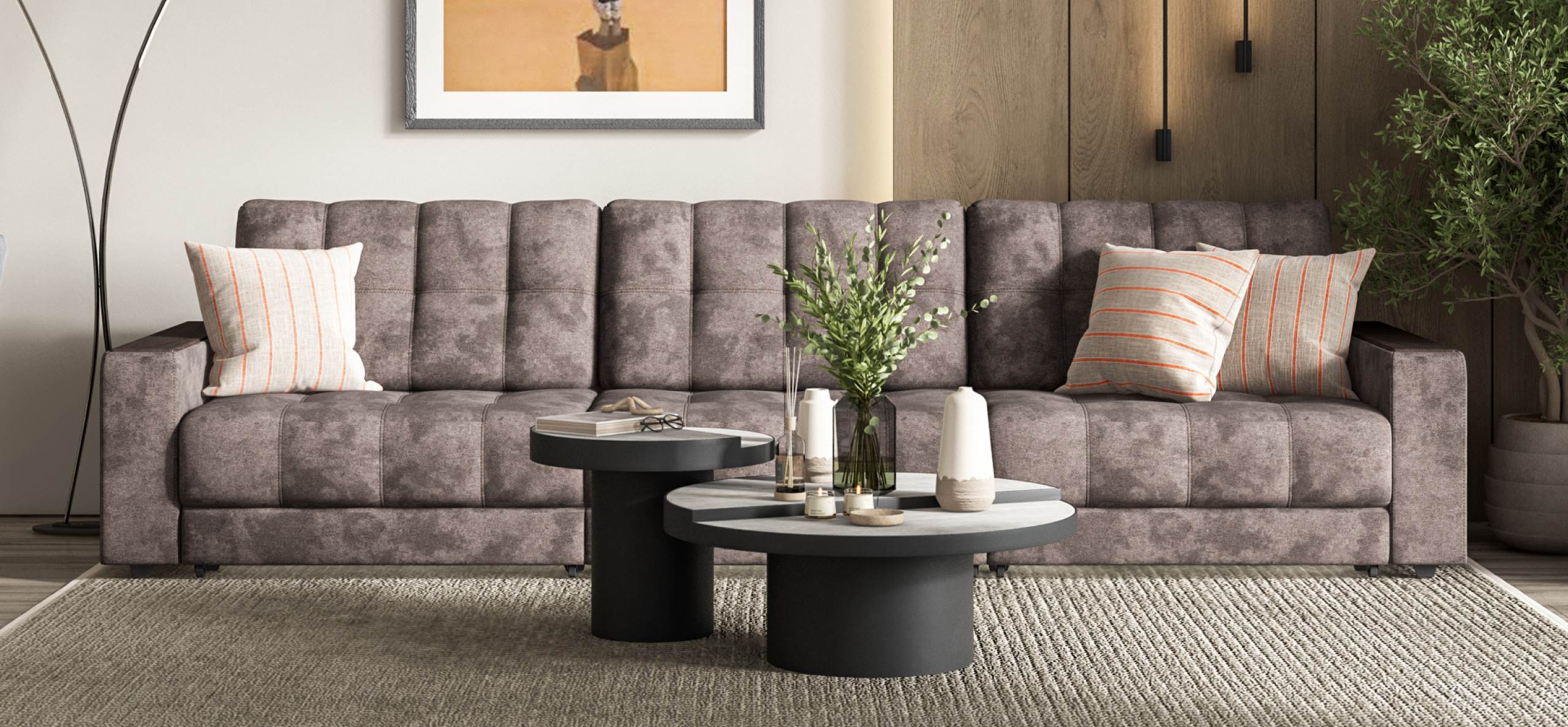 Диван Босс Гранд - большой, стильный и комфортный диван, предназначенный для просторной комнаты. Продуманный до мелочей диван Босс сочетает в себе надежный каркас, мягкие ткани, многофункциональность и быструю сборку за 1 минуту без инструментов - ощутите комфорт у себя дома!