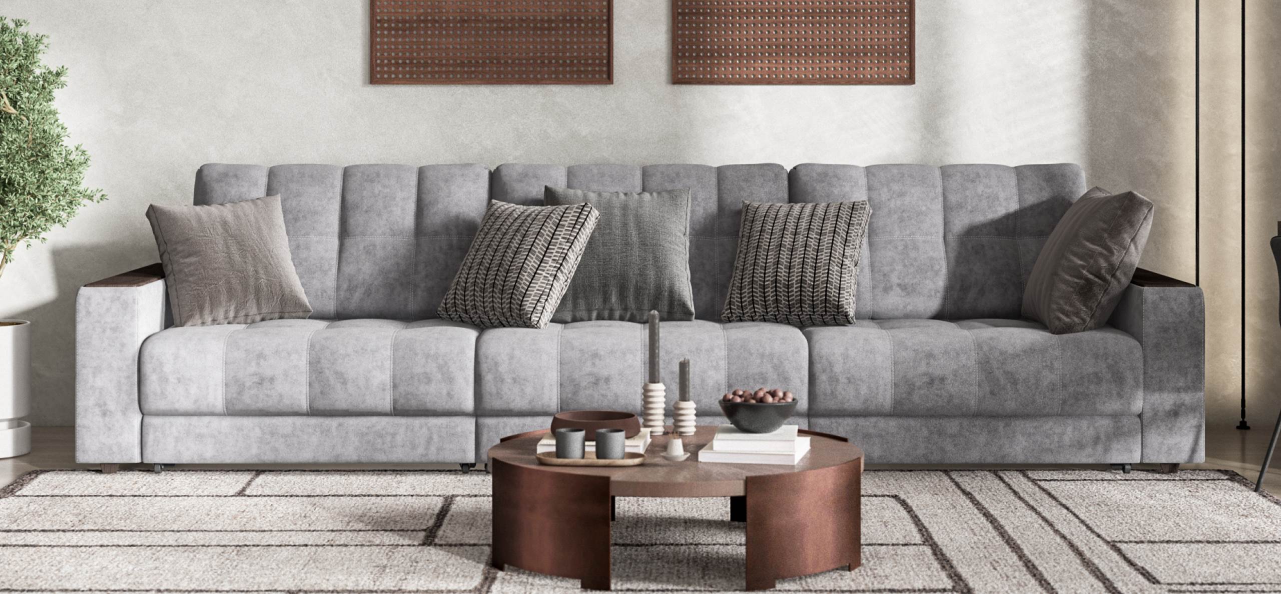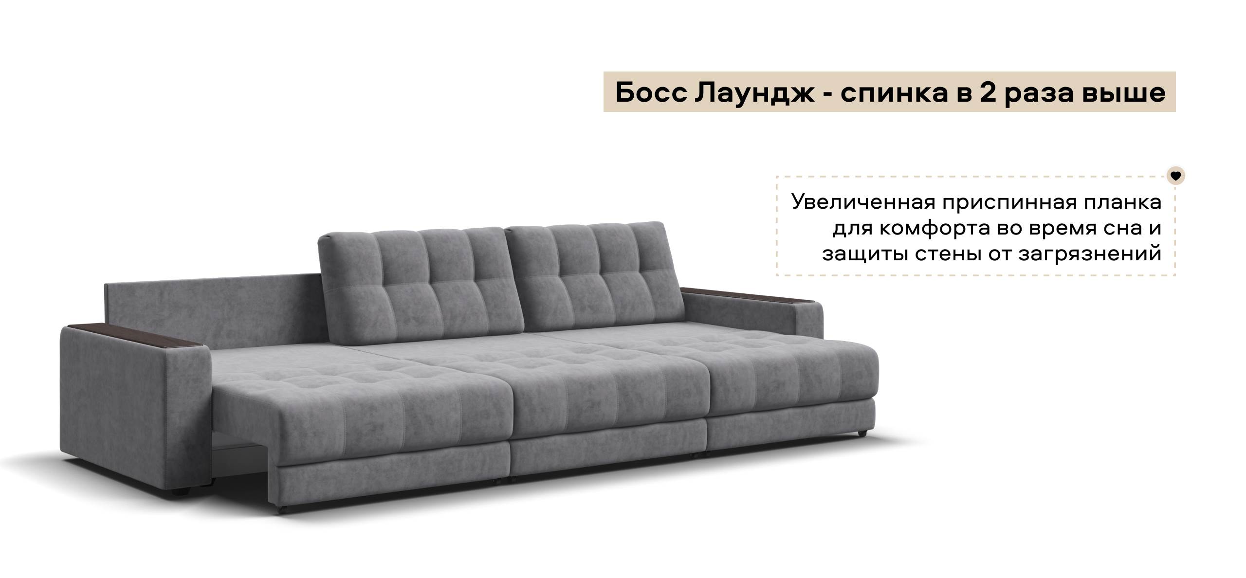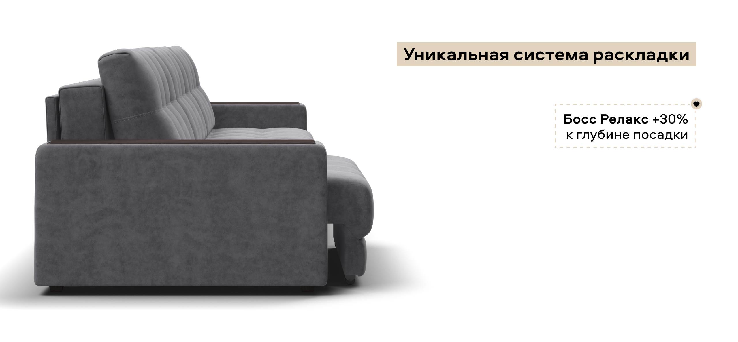 Диван Босс Гранд - большой, стильный и комфортный диван, предназначенный для просторной комнаты. Продуманный до мелочей диван Босс сочетает в себе надежный каркас, мягкие ткани, многофункциональность и быструю сборку за 1 минуту без инструментов - ощутите комфорт у себя дома!