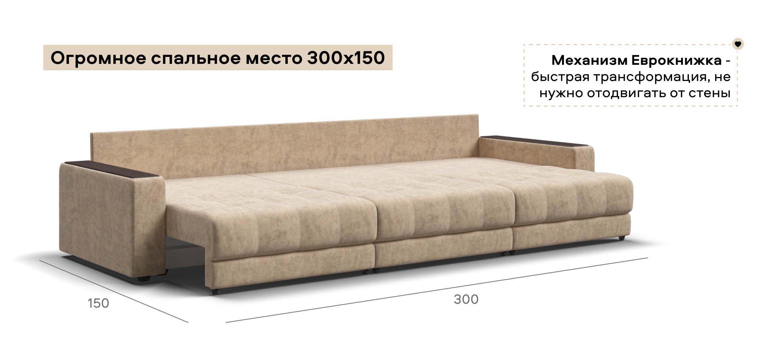 Диван Босс Гранд - большой, стильный и комфортный диван, предназначенный для просторной комнаты. Продуманный до мелочей диван Босс сочетает в себе надежный каркас, мягкие ткани, многофункциональность и быструю сборку за 1 минуту без инструментов - ощутите комфорт у себя дома!
