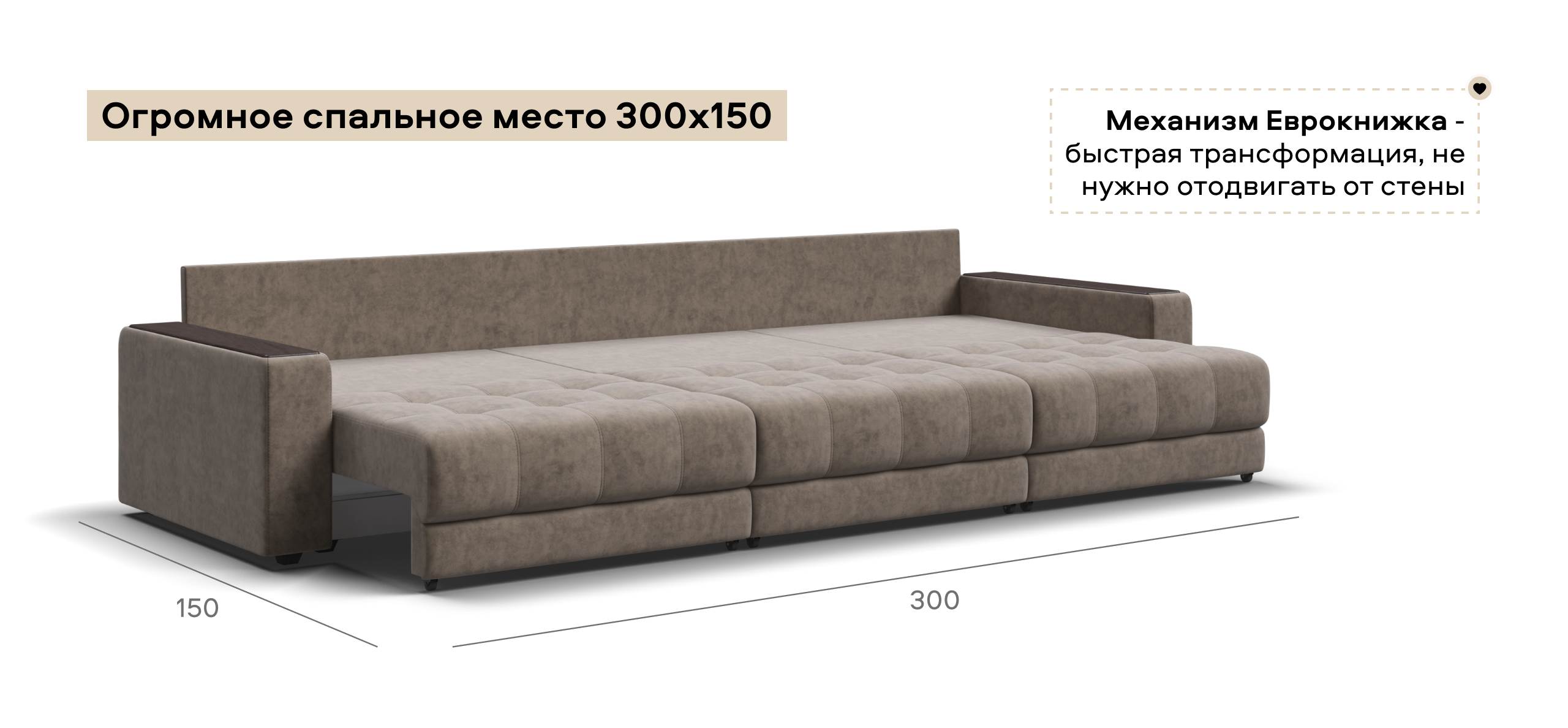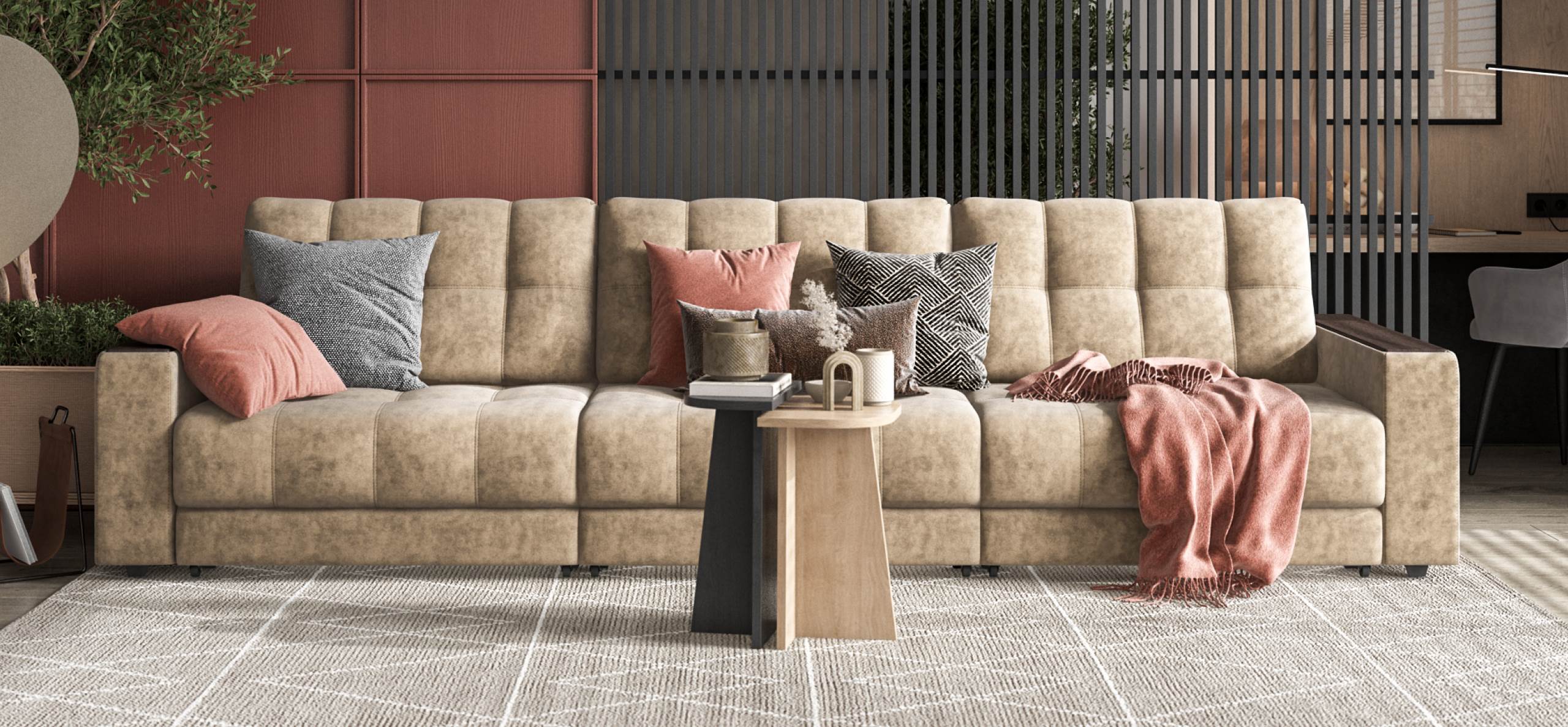 Диван Босс Гранд - большой, стильный и комфортный диван, предназначенный для просторной комнаты. Продуманный до мелочей диван Босс сочетает в себе надежный каркас, мягкие ткани, многофункциональность и быструю сборку за 1 минуту без инструментов - ощутите комфорт у себя дома!