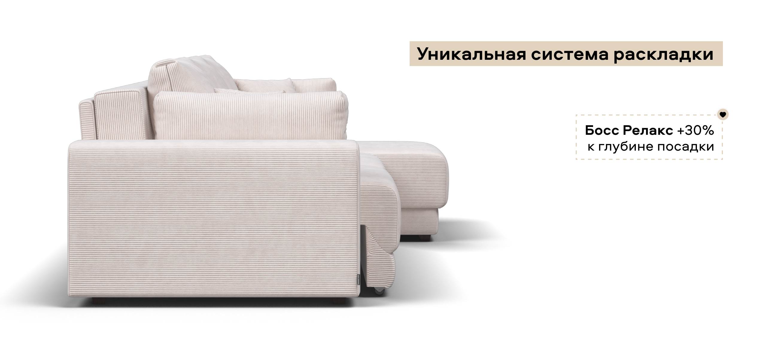 Угловой диван Босс Прайм ХЛ Вельвет Корд бежевый