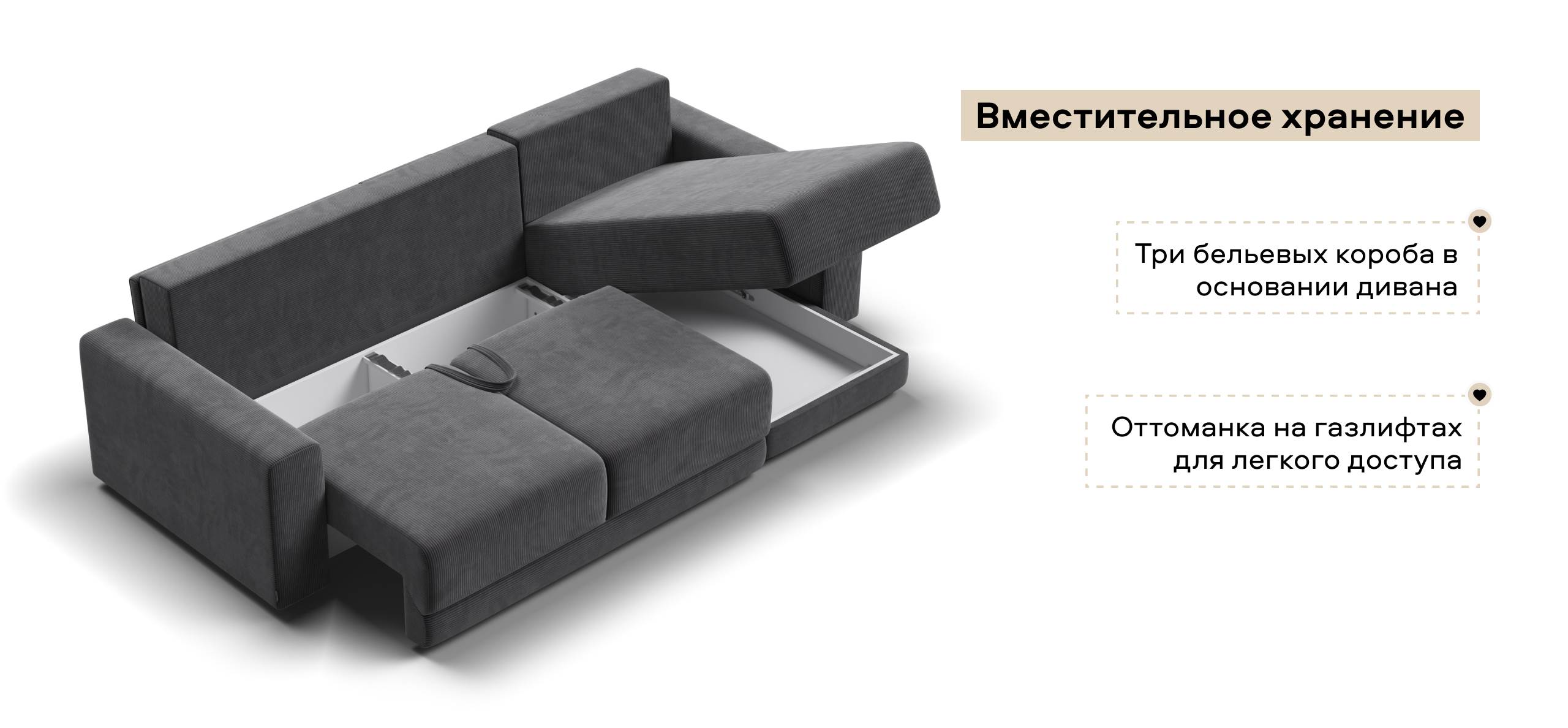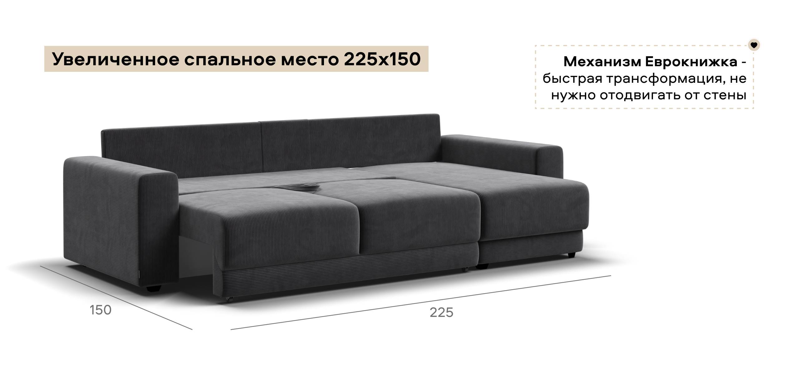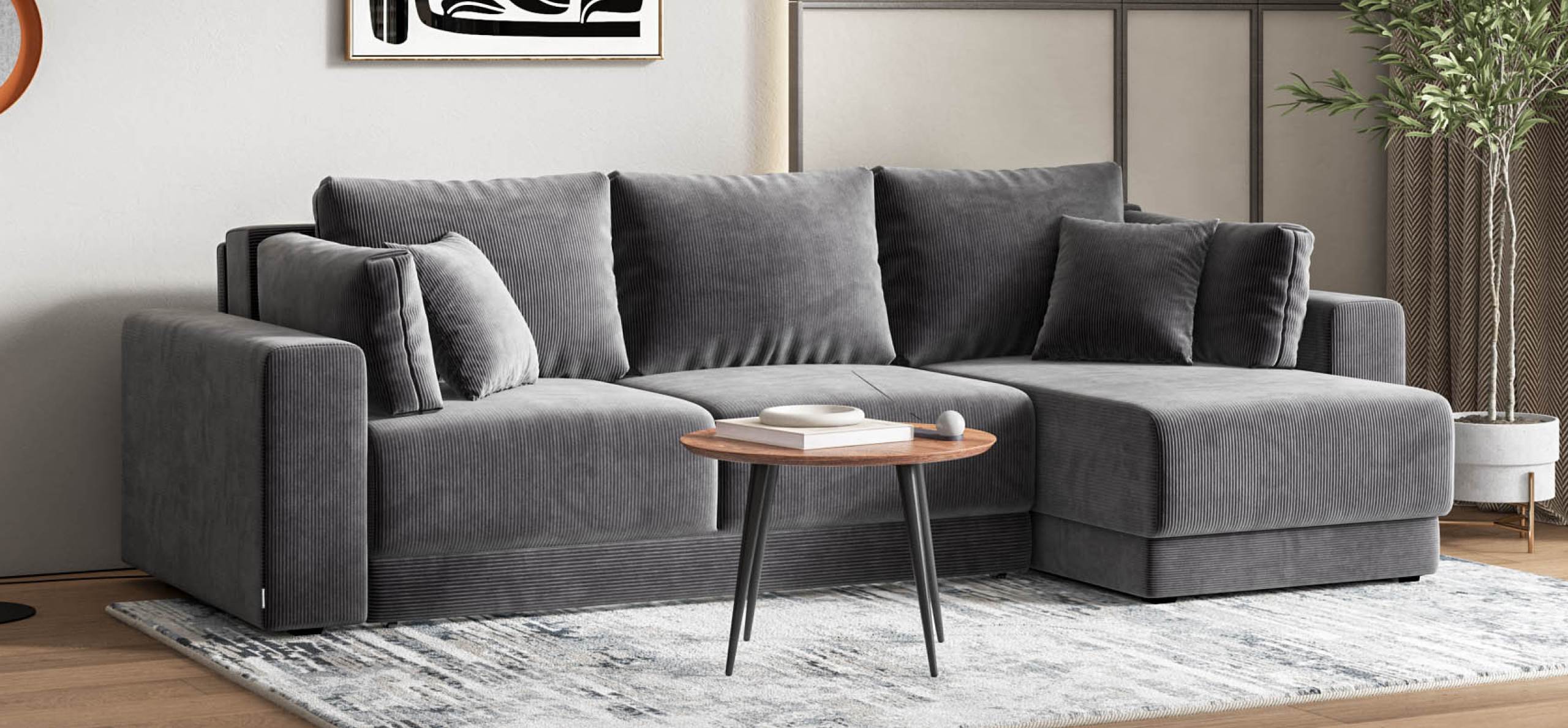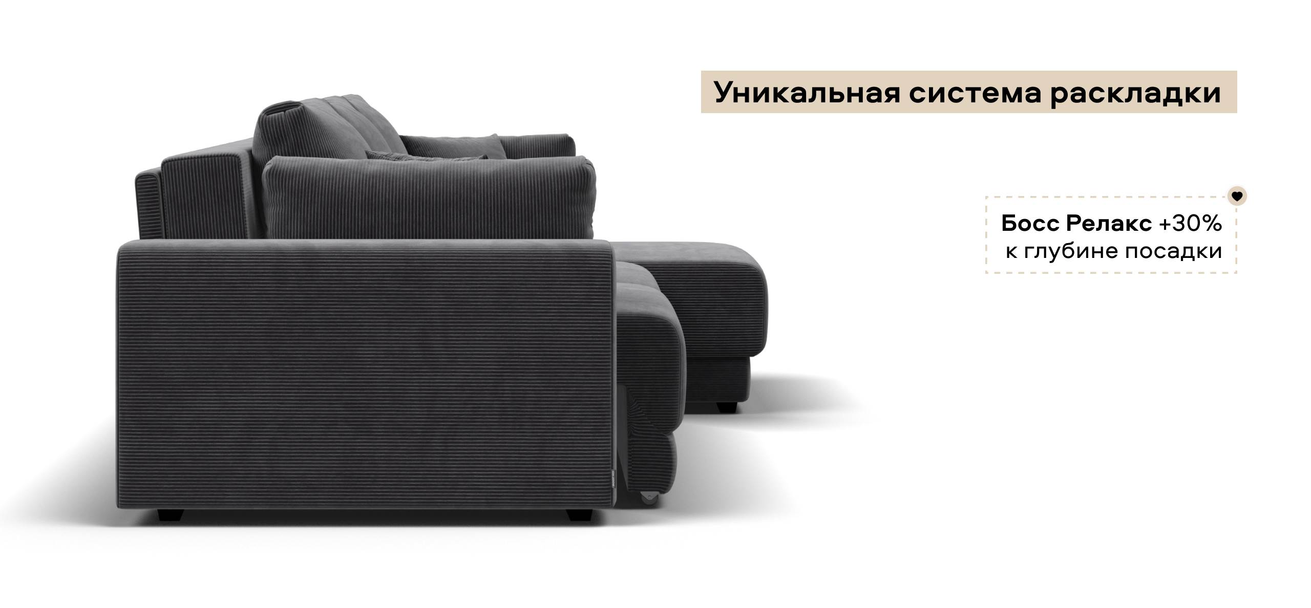 Угловой диван Босс Прайм ХЛ Вельвет Корд графит