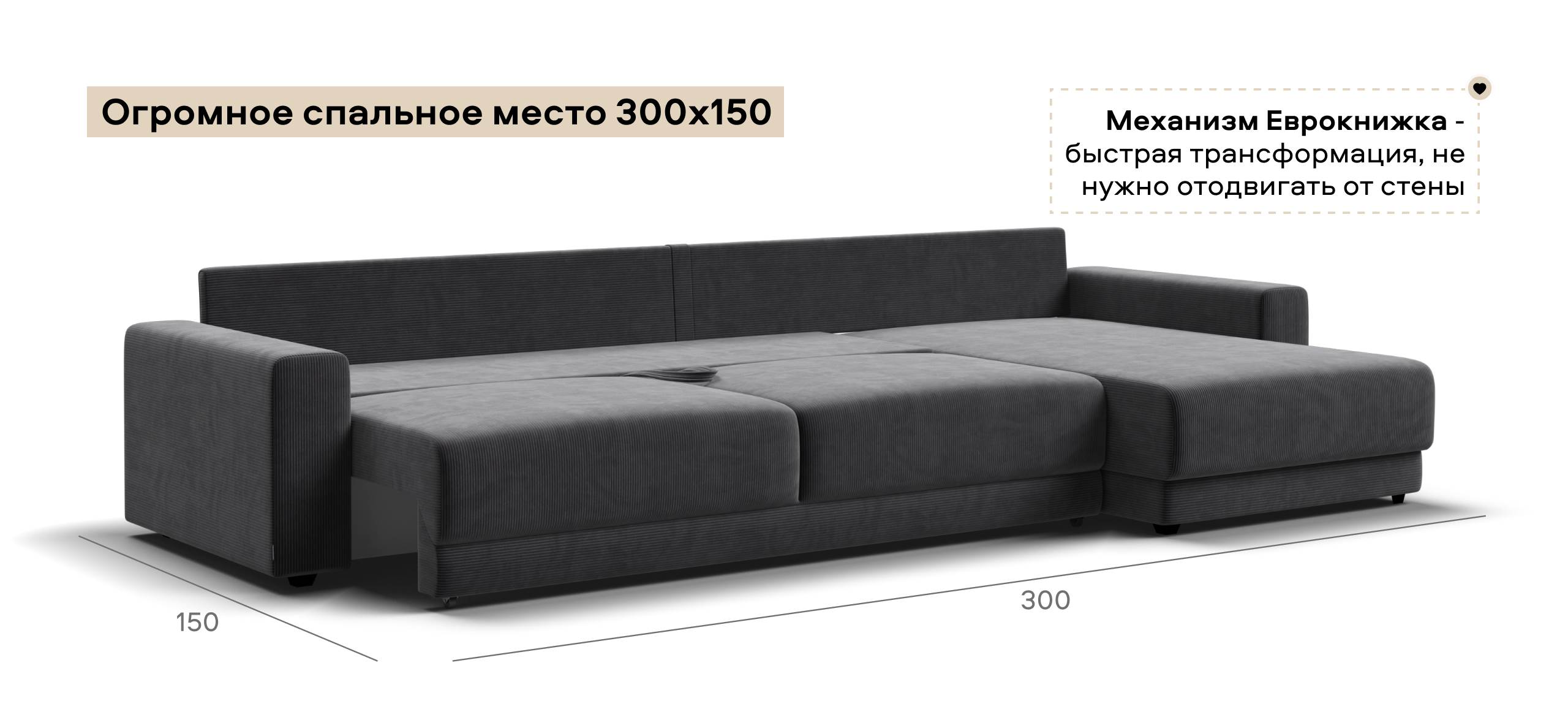 Угловой диван Босс Прайм Макс Вельвет Корд графит