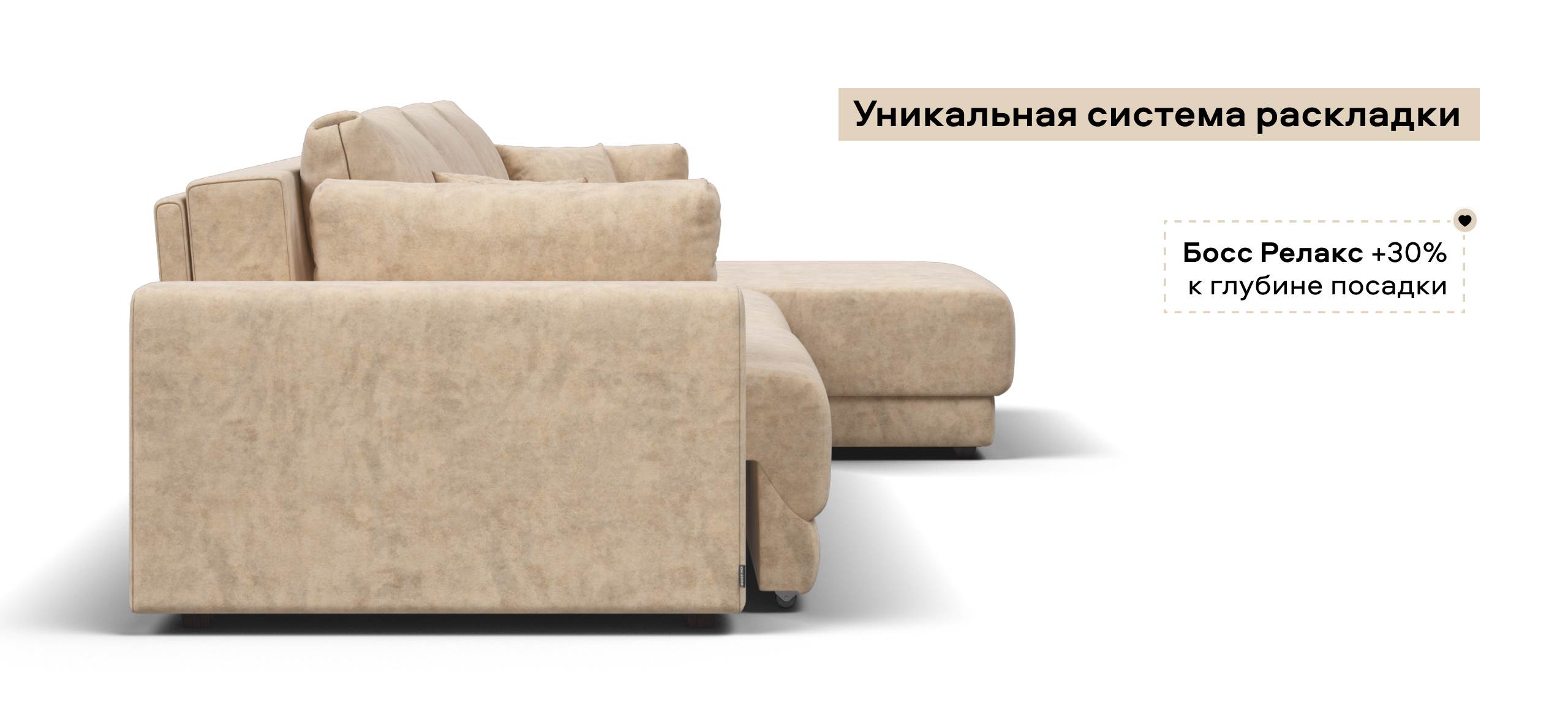 Угловой диван Босс Прайм Макс велюр Роял шампань