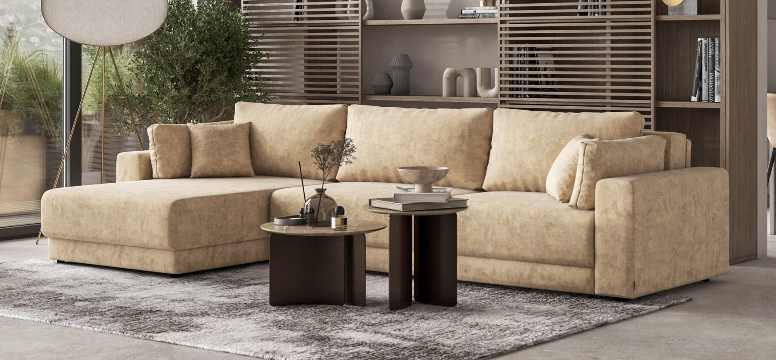 Угловой диван Босс Прайм Макс - это сочетание современного дизайна и продуманной эргономики, создающее уютную атмосферу в любом интерьере. Визуально разделённое сиденье, широкие мягкие подлокотники и пышные подушки разного размера обеспечивают не только эстетическую привлекательность, но и максимальный комфорт.